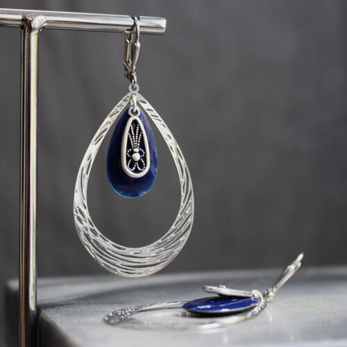 Boucles d’oreilles – Accolade bleu marine