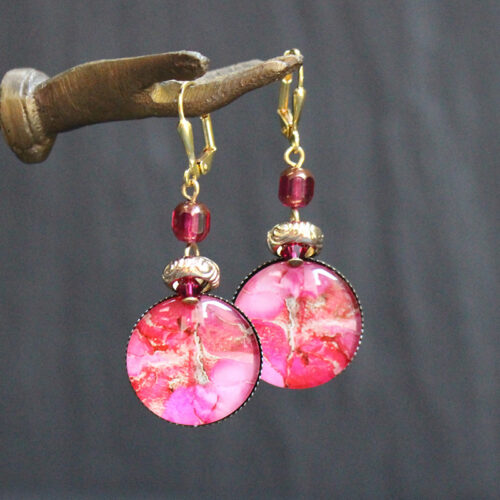 Boucles d’oreilles – Cabochon Fushia