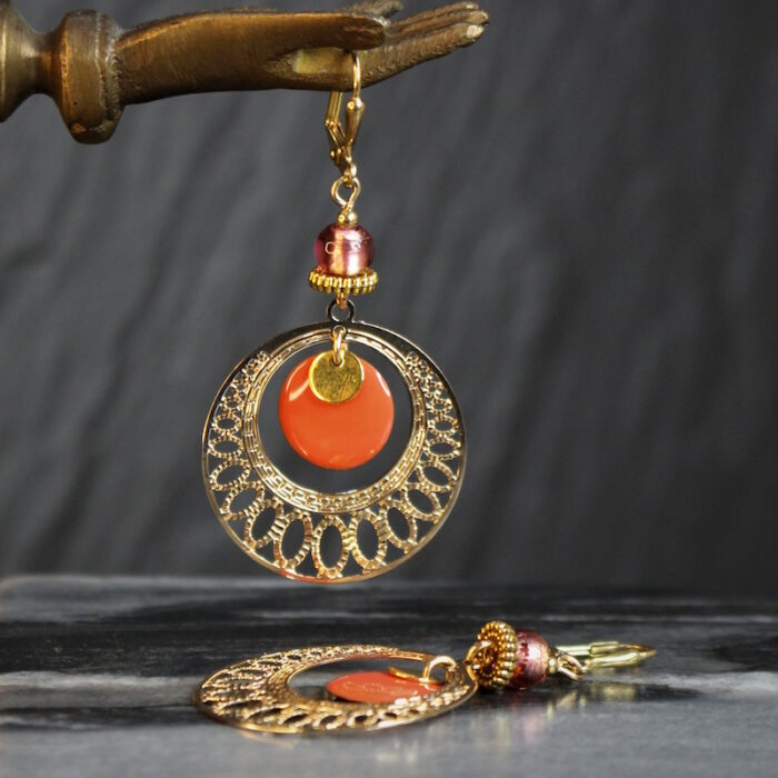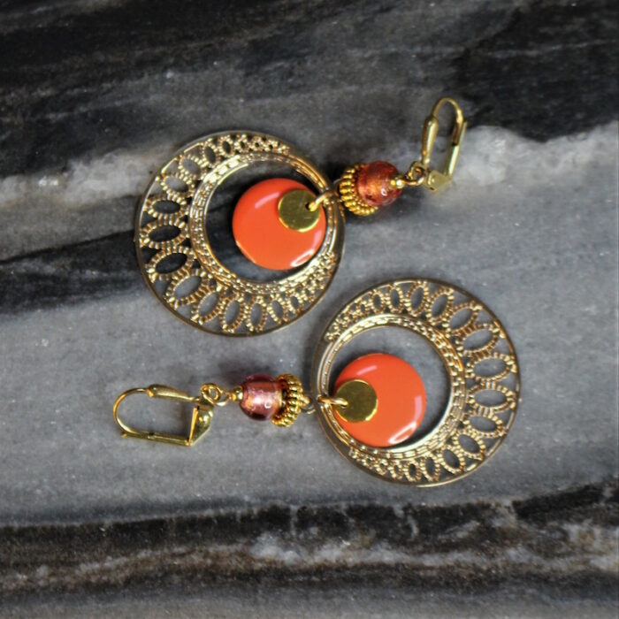 Laiton doré à l’or fin, acier inoxydable, émail et pâte de verre.
