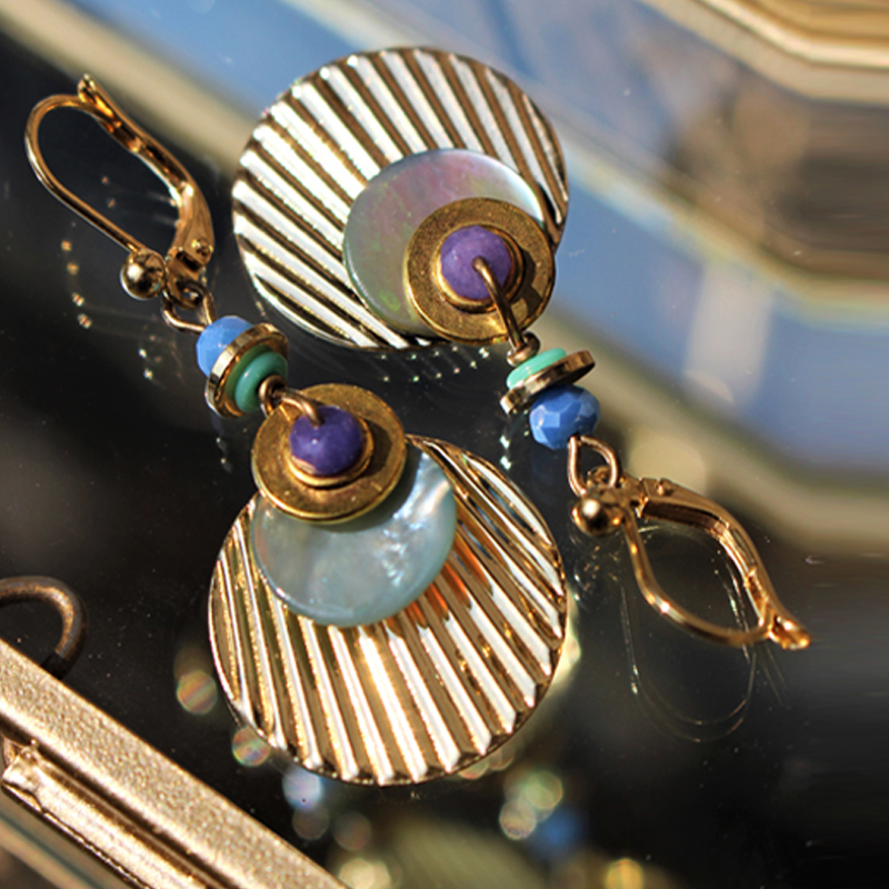 Laiton doré à l’or fin, nacre et pâte de verre.