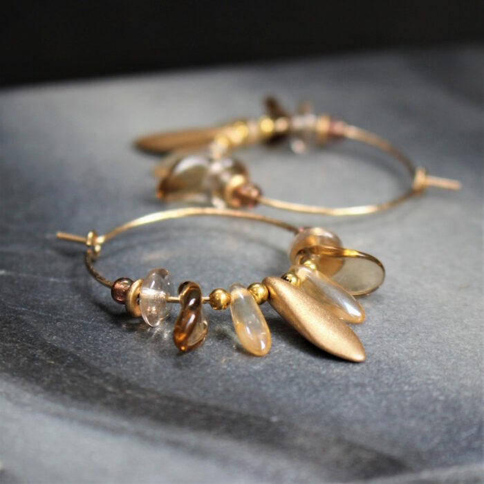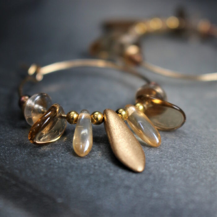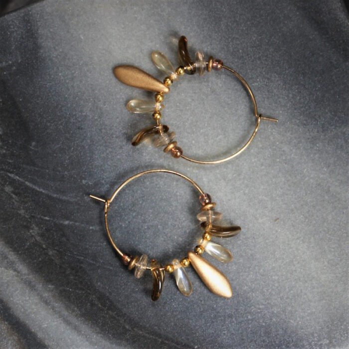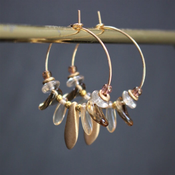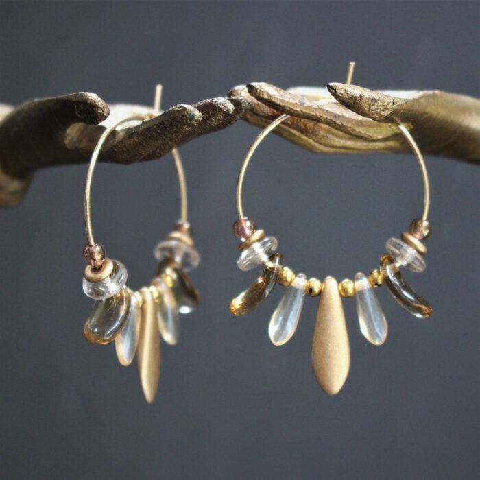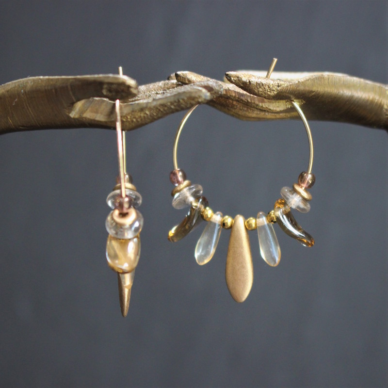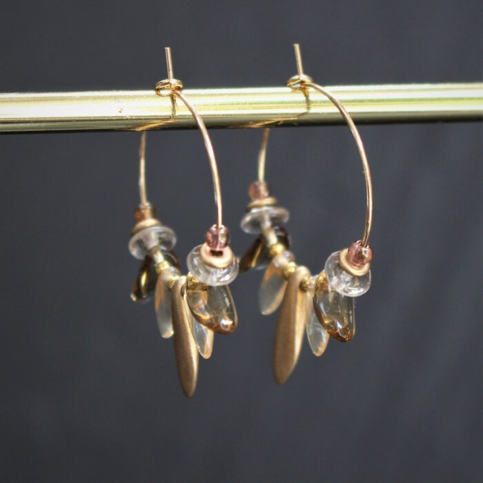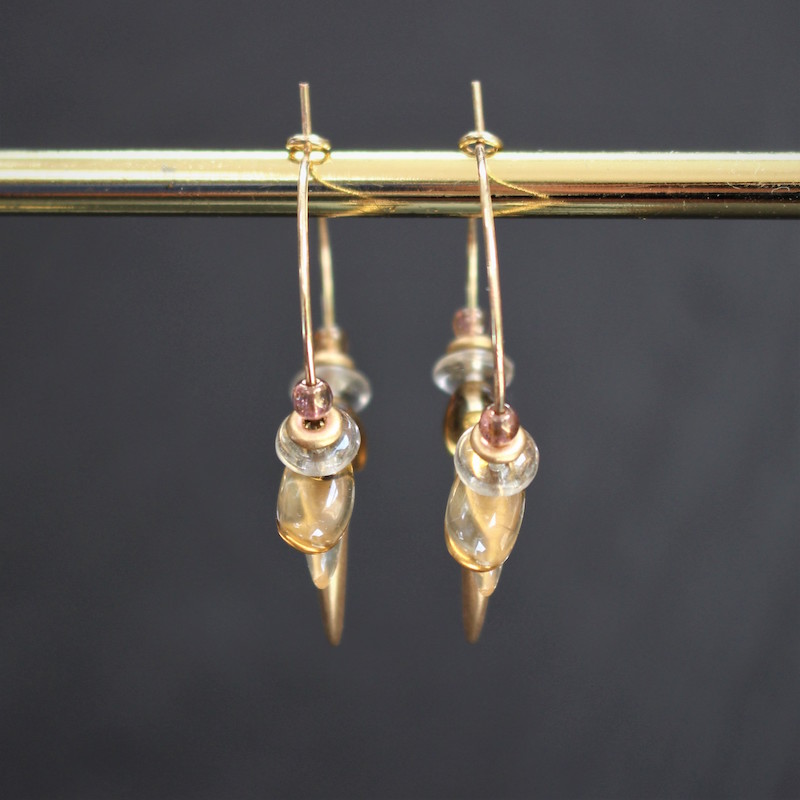 Acier inoxydable, laiton doré à l’or fin et pâte de verre.