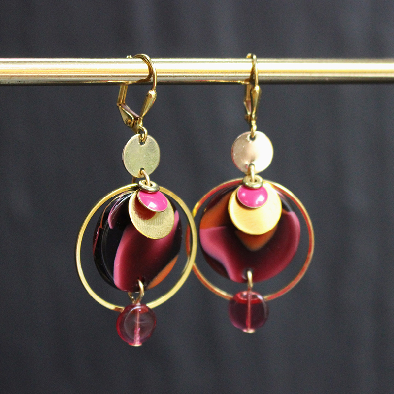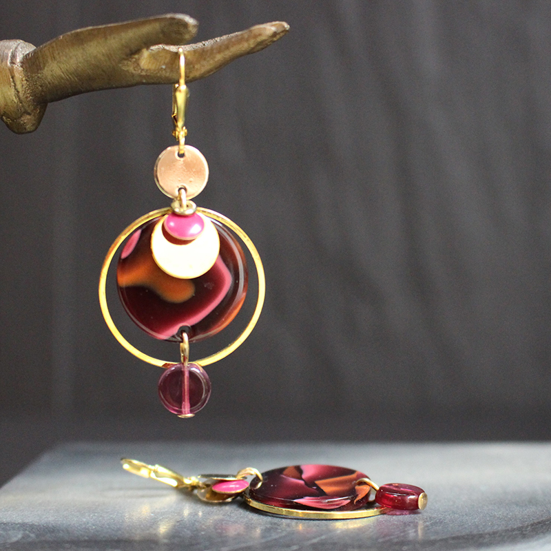 Laiton doré à l’or fin et coloré, acétate, émail et pâte de verre.
