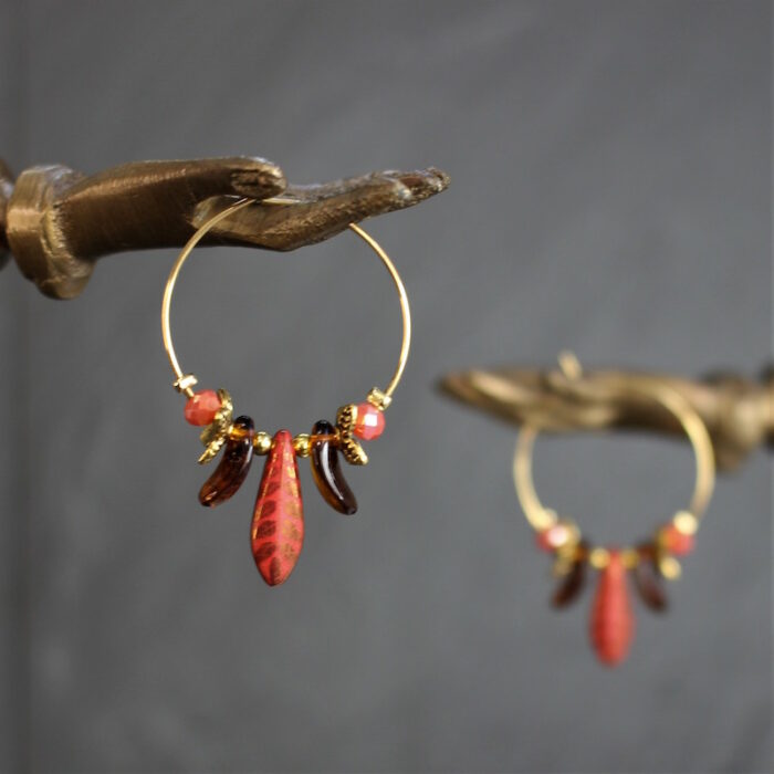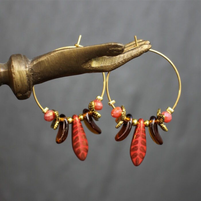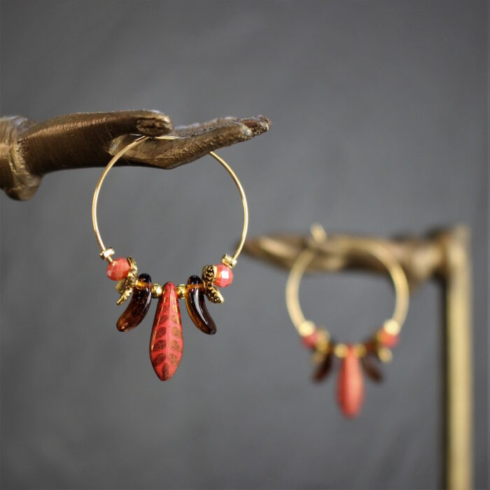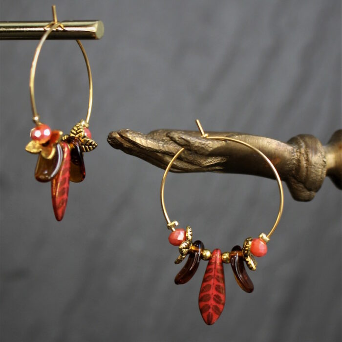 Acier inoxydable, laiton doré sans nickel et pâte de verre.