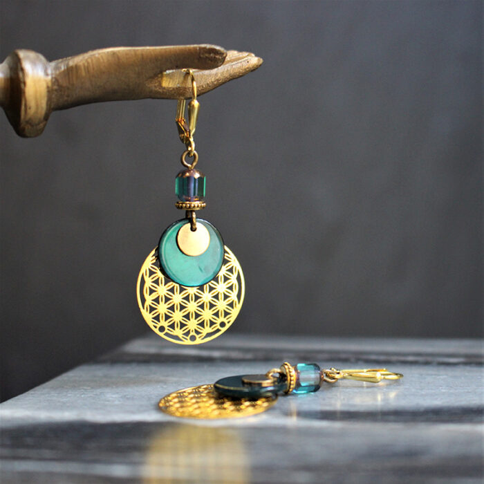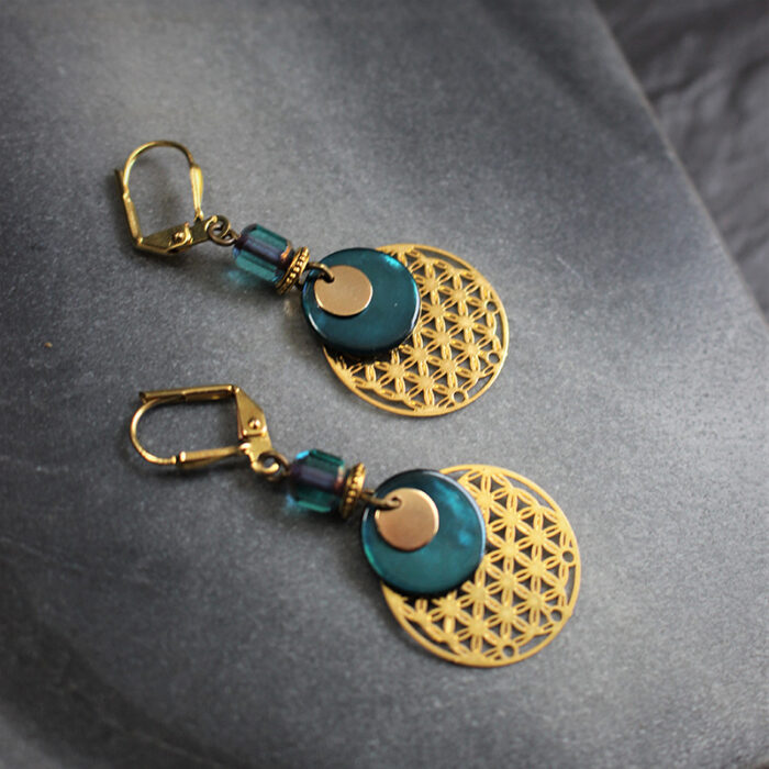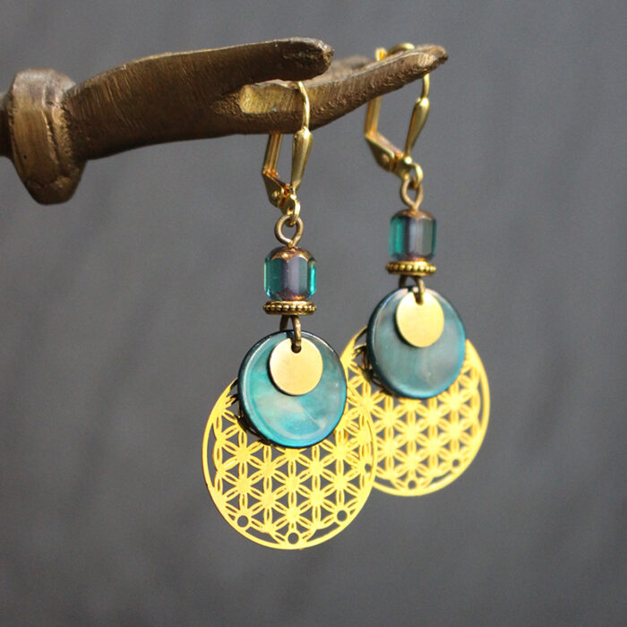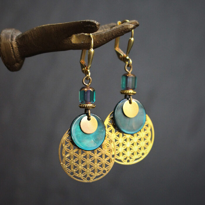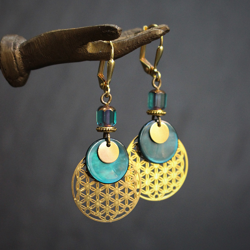 Laiton doré à l’or fin, émail, nacre et pâte de verre.