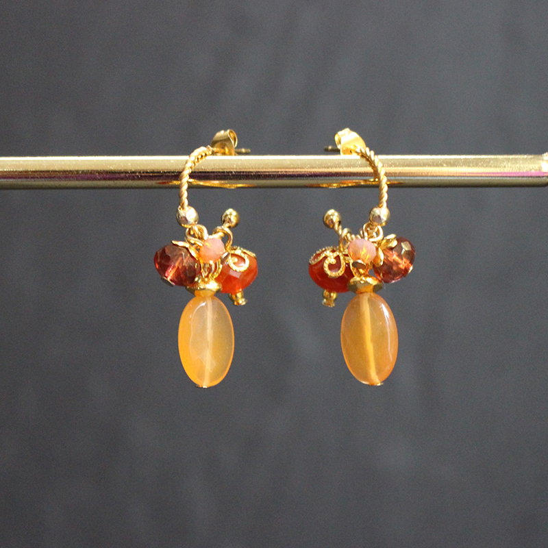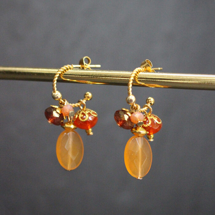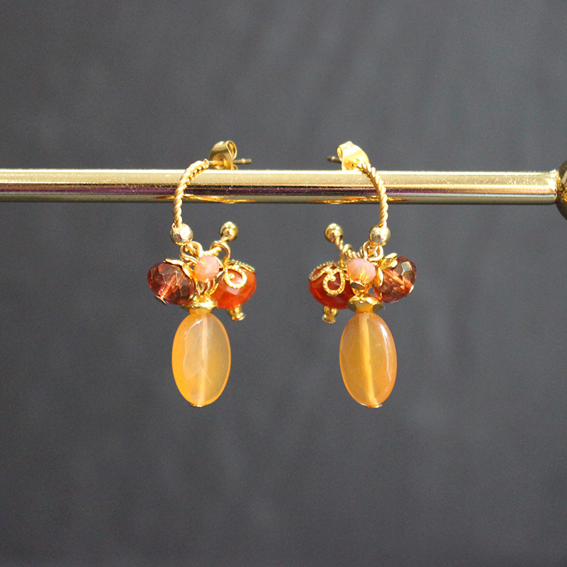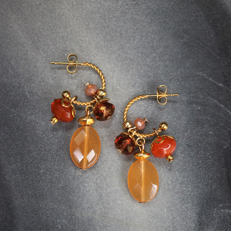 Acier inoxydable, laiton doré à l’or fin, agate et pâte de verre.