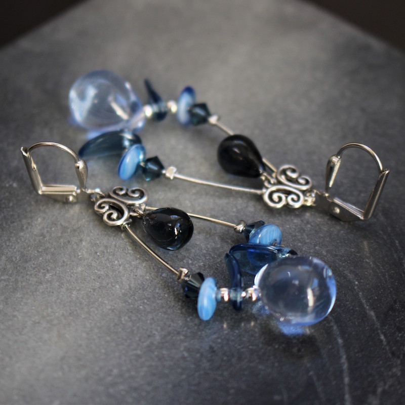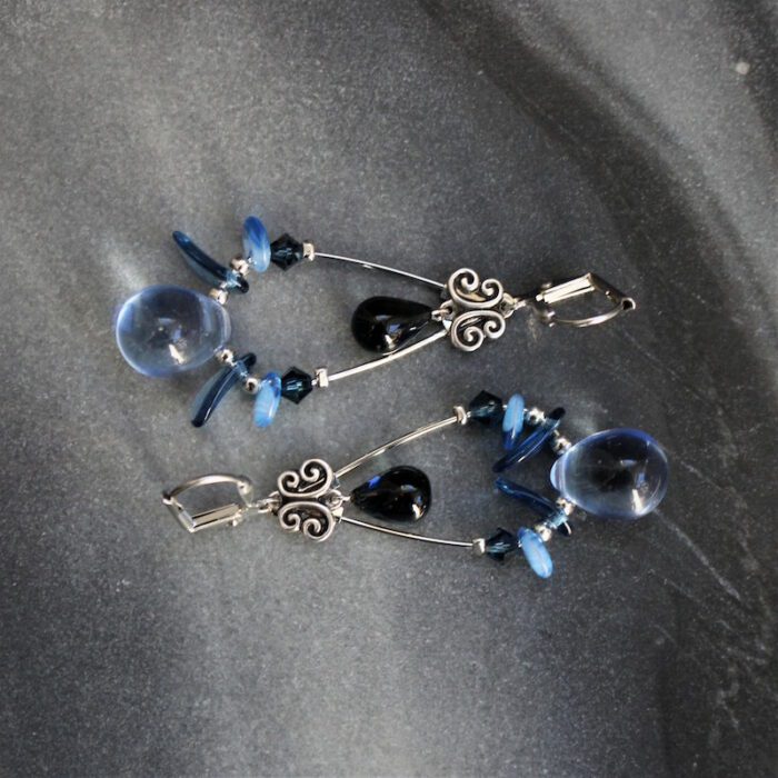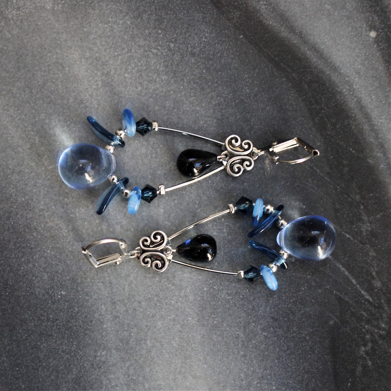 Laiton argenté sans nickel, pâte de verre et cristal de Swarovski.