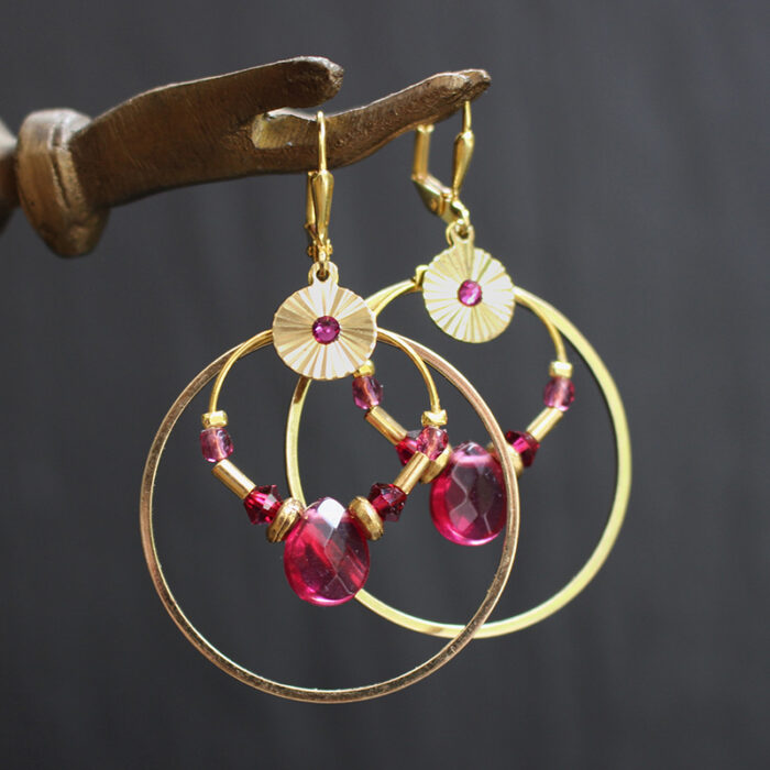 Laiton doré à l’or fin, opaline teintée et pâte de verre.