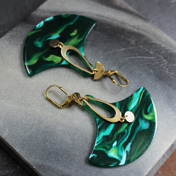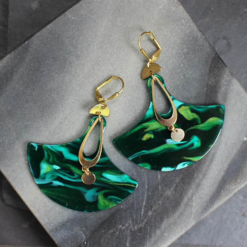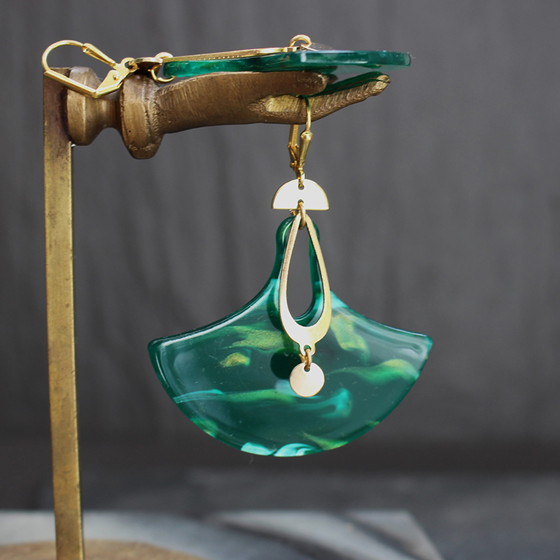 Laiton doré à l’or fin et coloré, acétate, émail et pâte de verre.