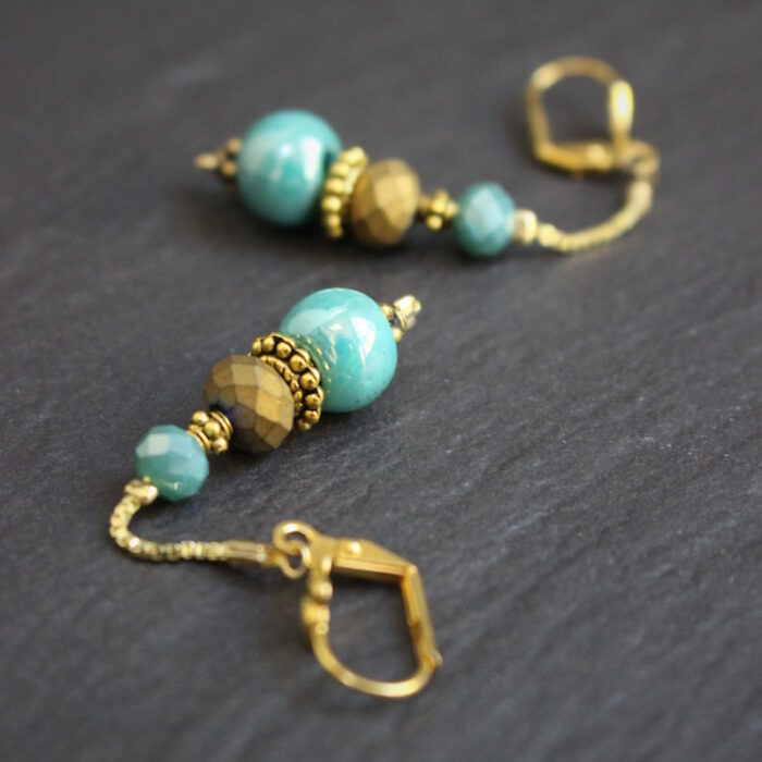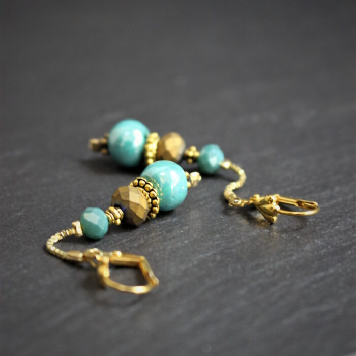 Laiton doré à l’or fin, céramique et pâte de verre.