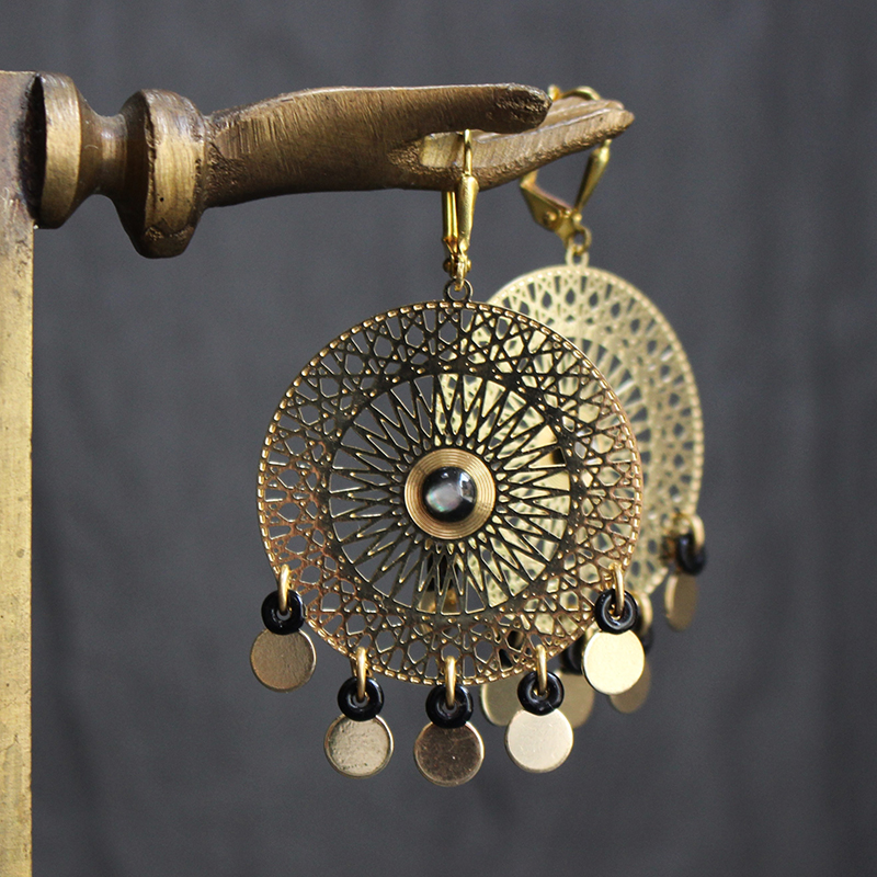 Laiton doré à l’or fin, nacre et pâte de verre.