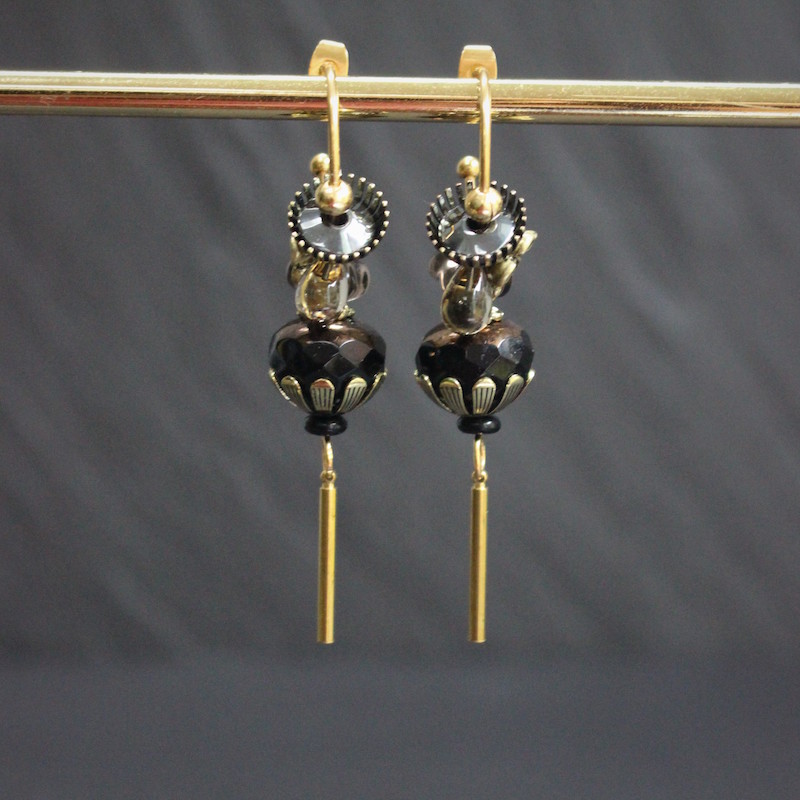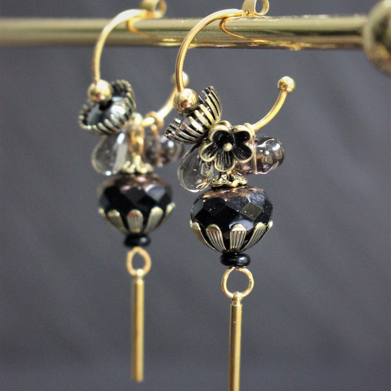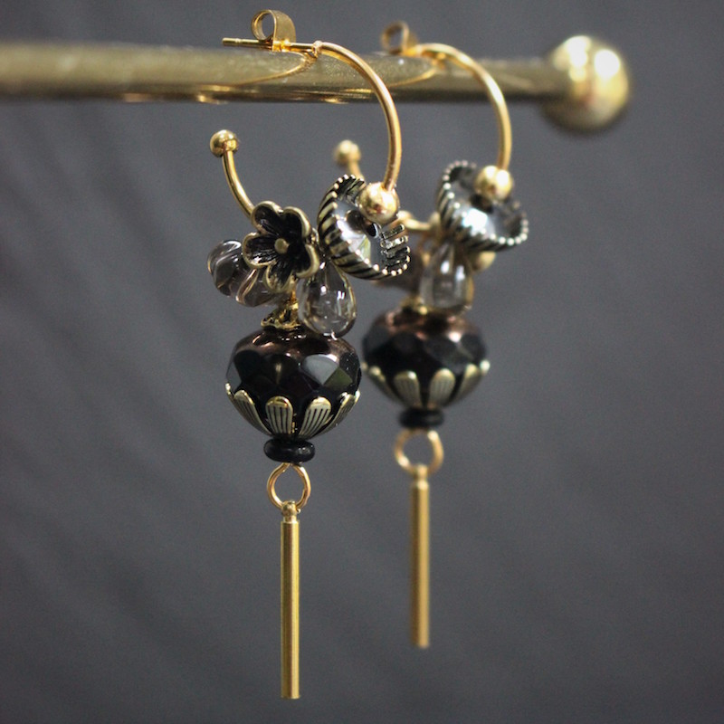 Acier inoxydable, laiton doré à l’or fin, hématite, quartz, nacre et pâte de verre.
