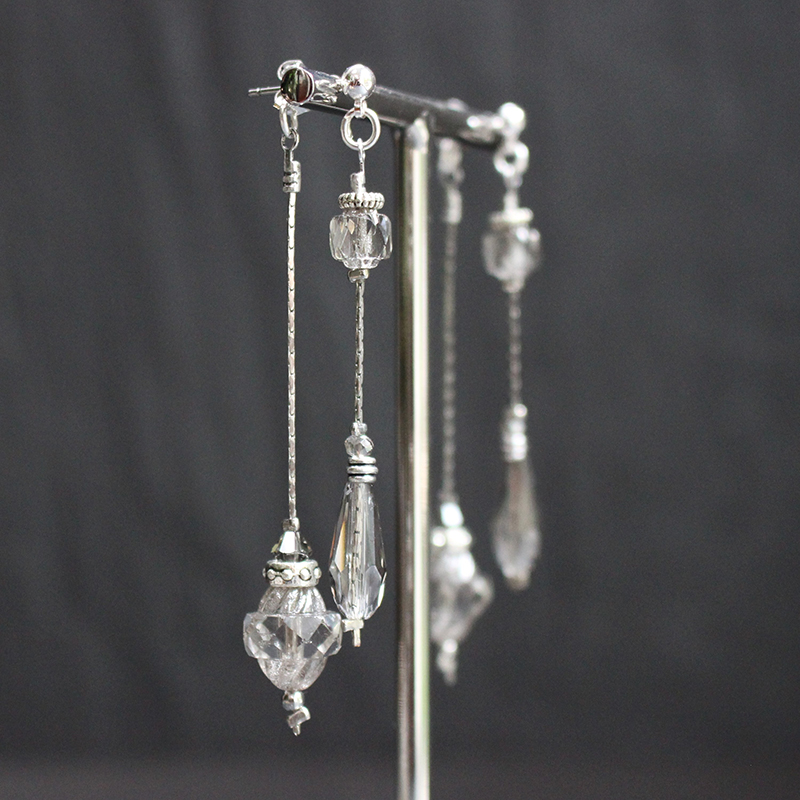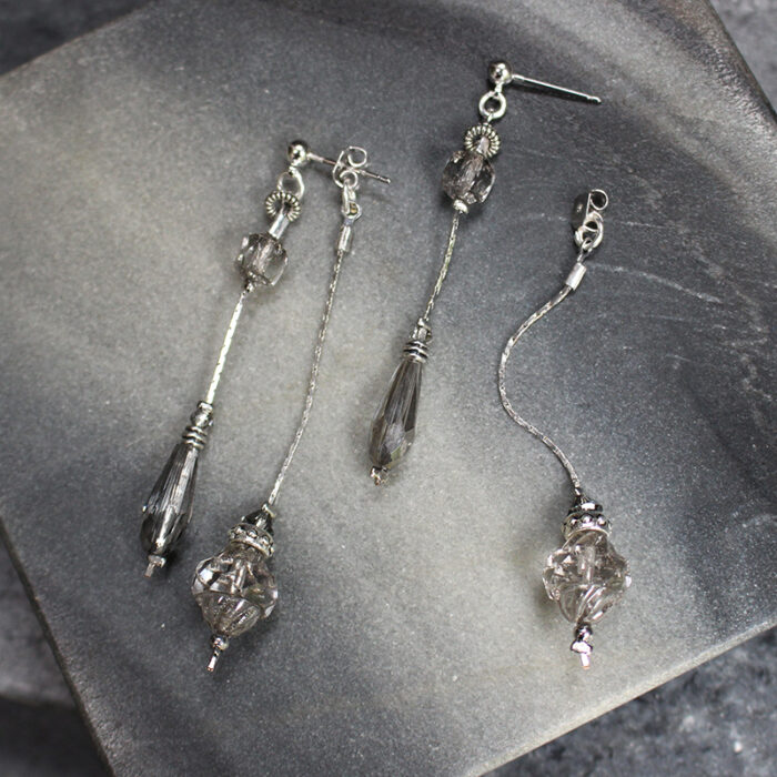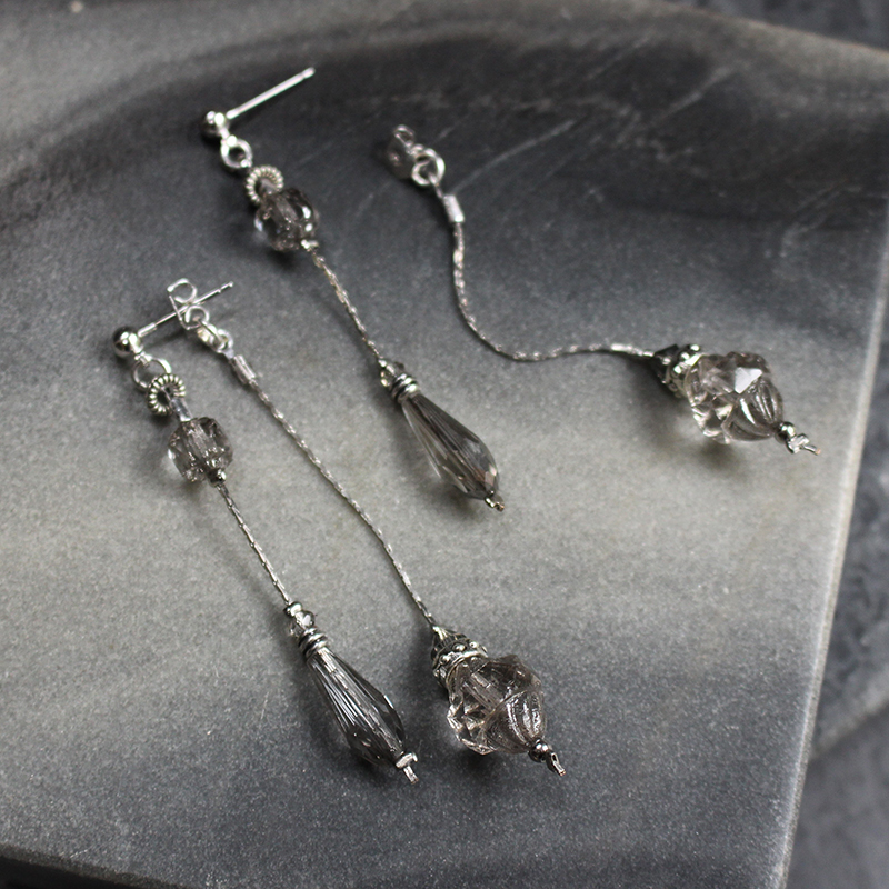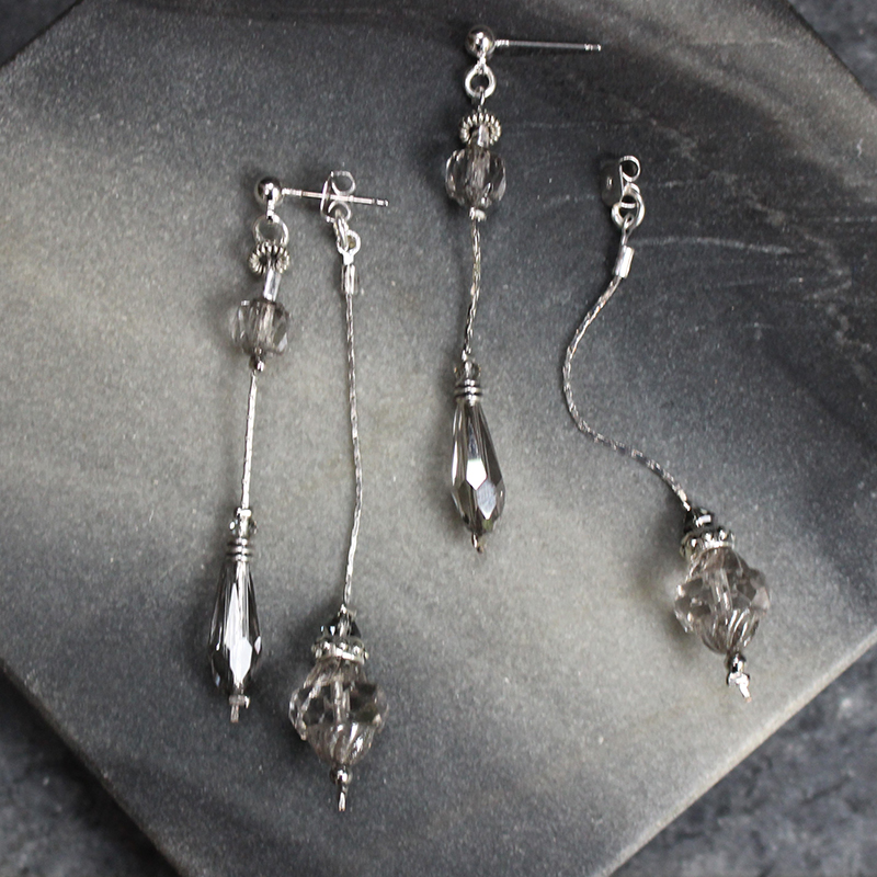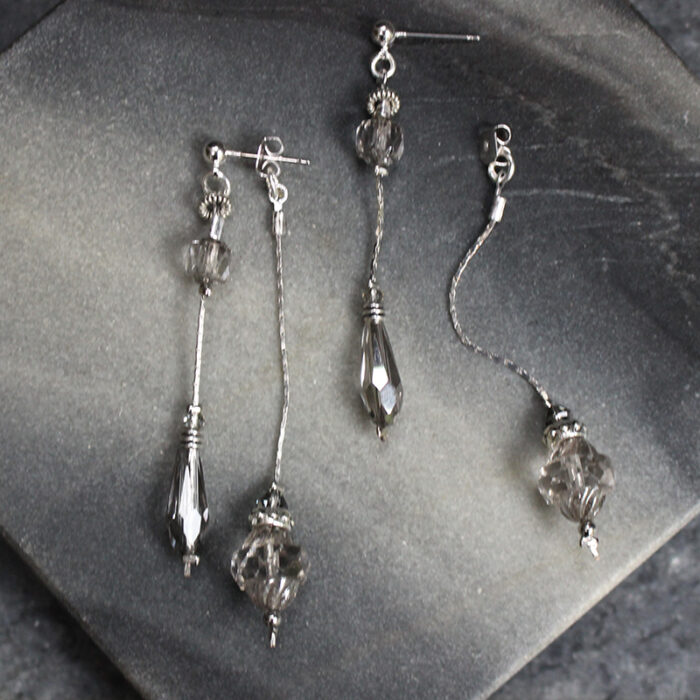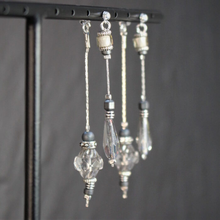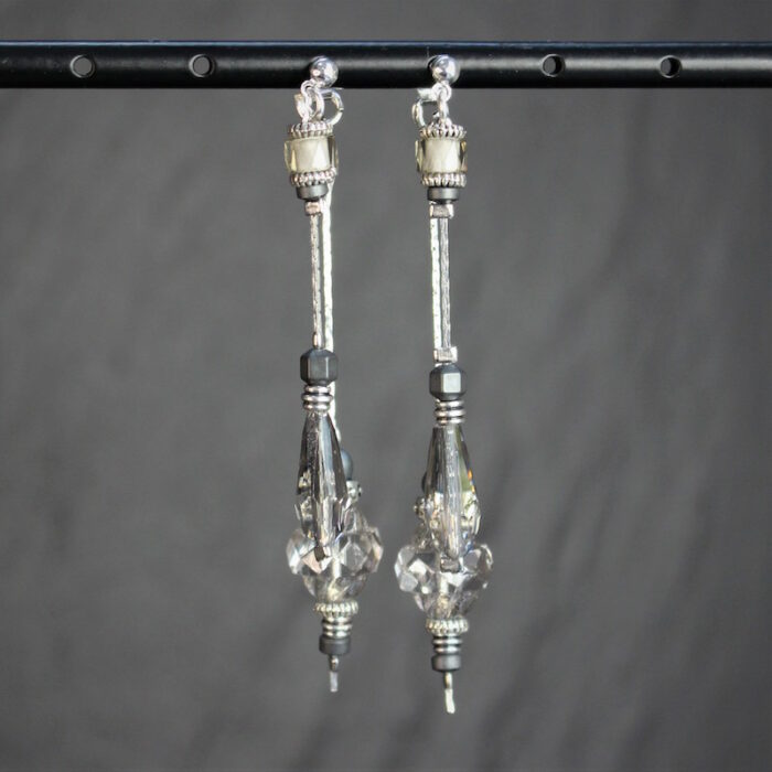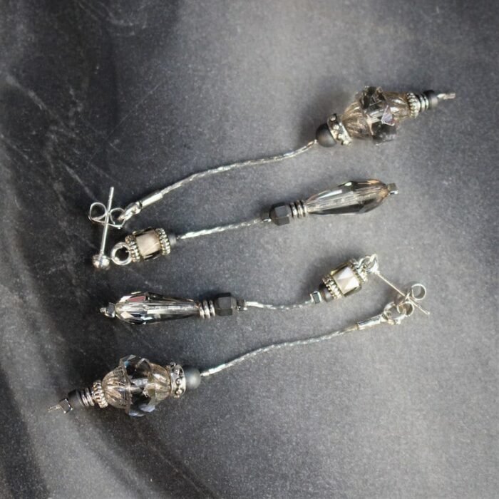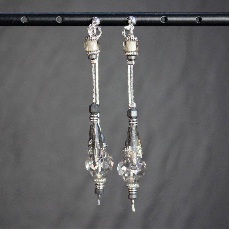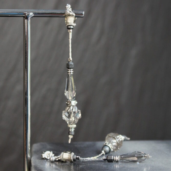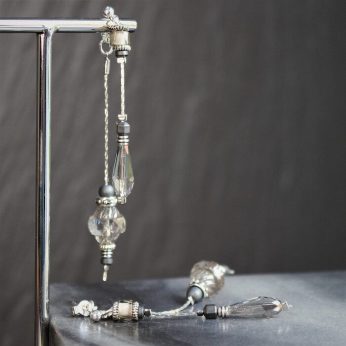 Laiton argenté sans nickel, hématite et cristal de verre.