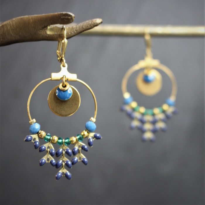 Acier inoxydable, laiton doré à l’or fin, émail et pâte de verre.