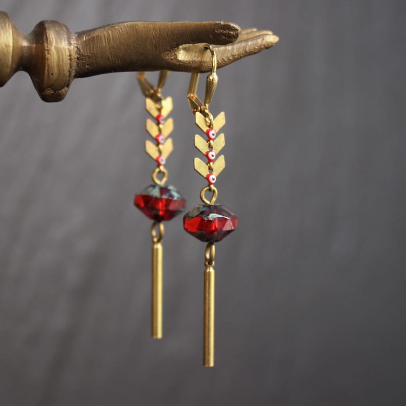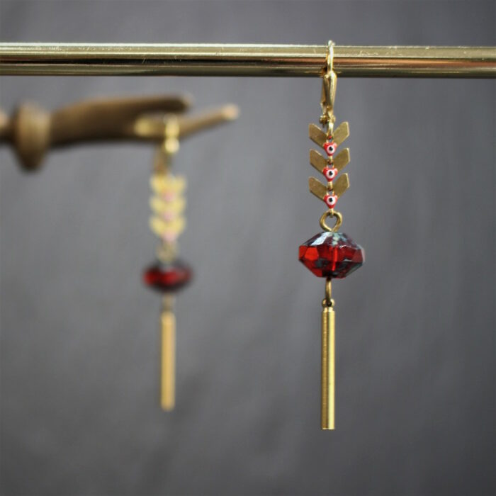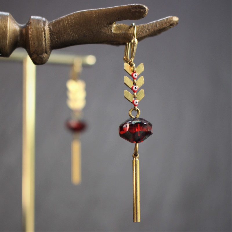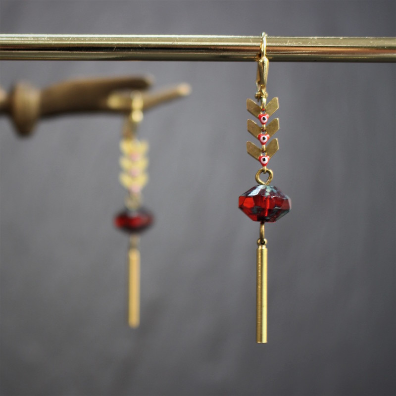 Acier inoxydable, laiton doré sans nickel, émail et pâte de verre.