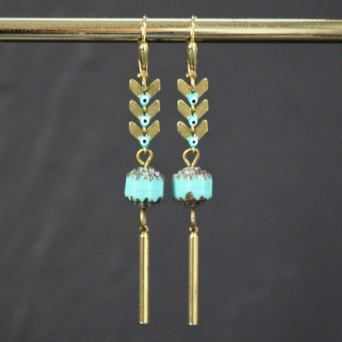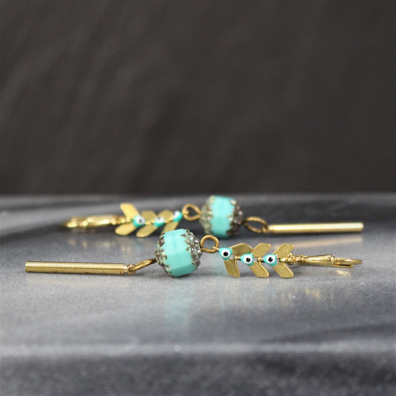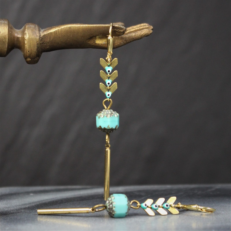 Acier inoxydable, laiton doré sans nickel, émail et pâte de verre.