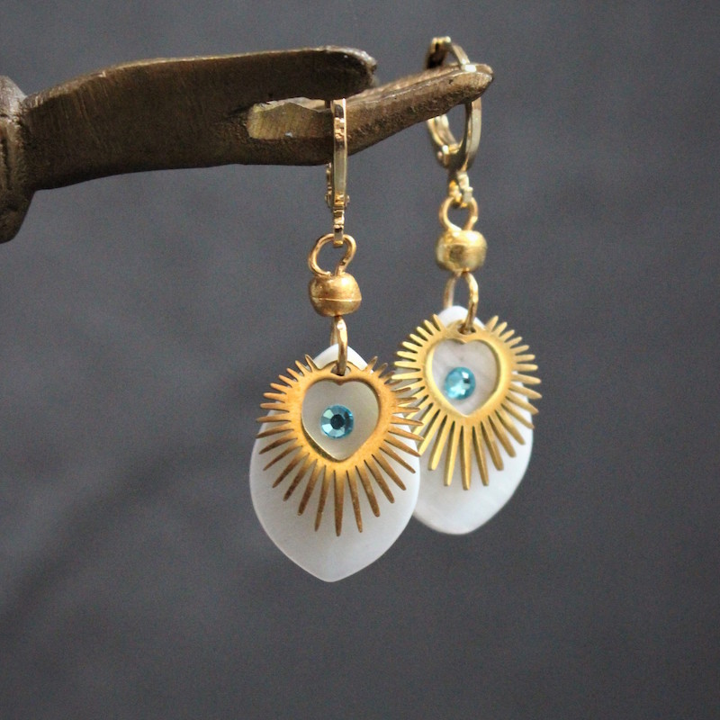 Acier inoxydable, laiton doré à l’or fin, nacre et strass en cristal de verre.