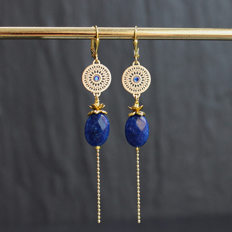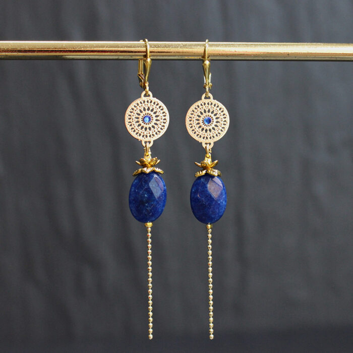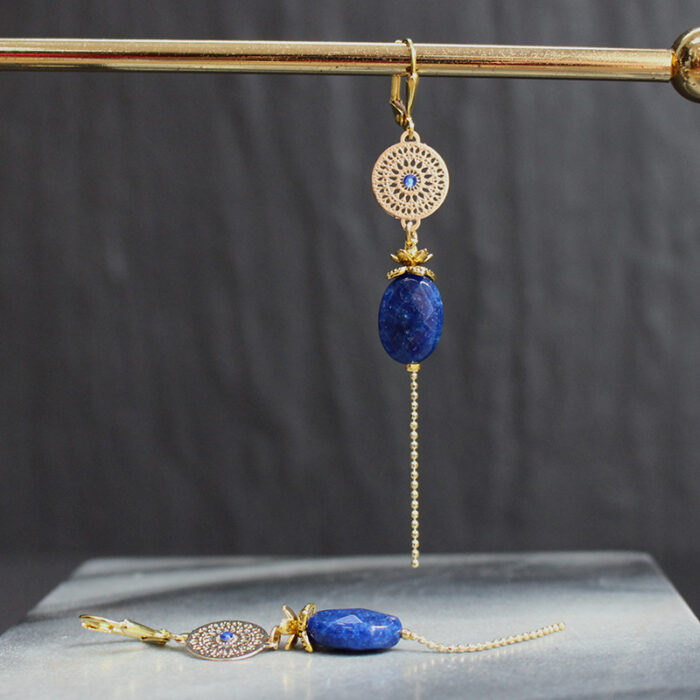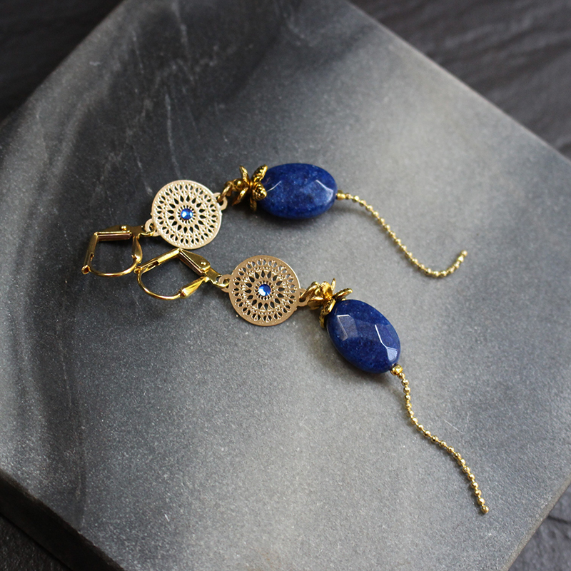Laiton doré à l’or fin, agate et cristal de Swarovski.