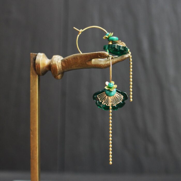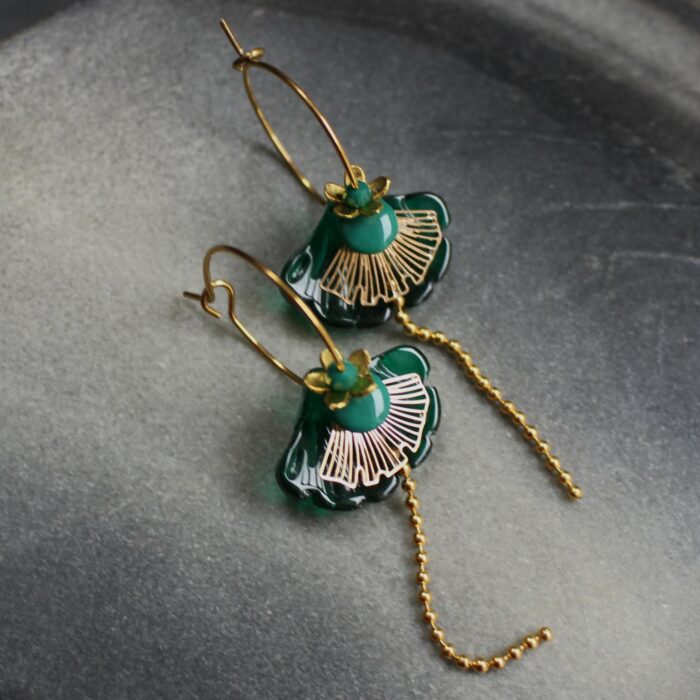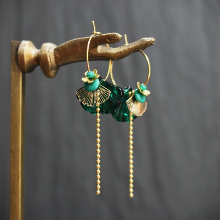 Acier inoxydable, laiton doré à l’or fin et pâte de verre.