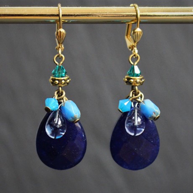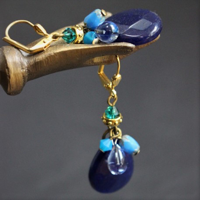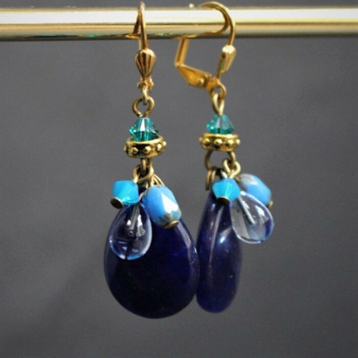Laiton doré à l’or fin, agate teintée, pâte de verre et cristal de Swarovski.