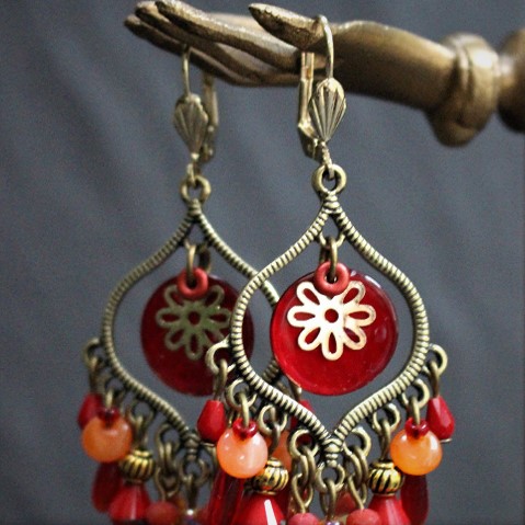 Laiton bronze sans nickel, nacre, céramique, cristal et pâte de verre.