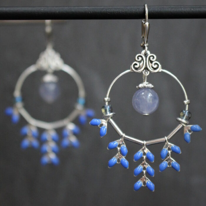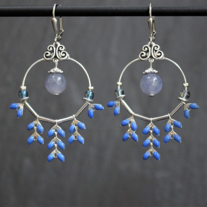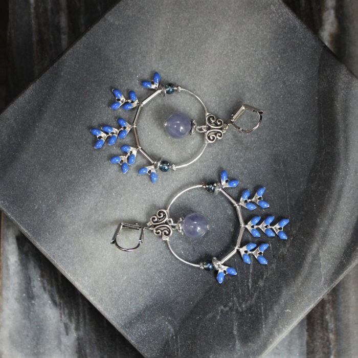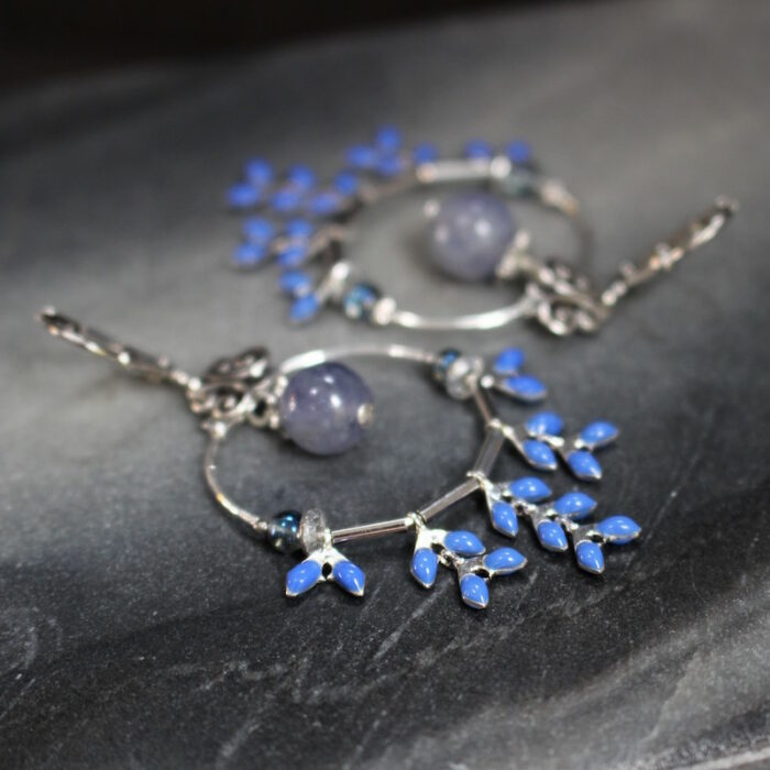 Laiton argenté& sans nickel, émail et pâte de verre.