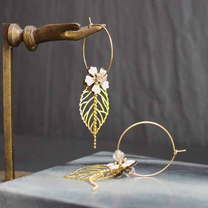 Acier inoxydable, laiton doré à l’or fin, émail et pâte de verre.