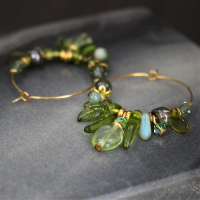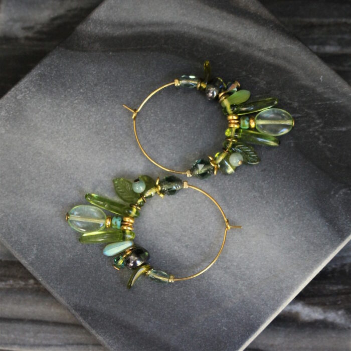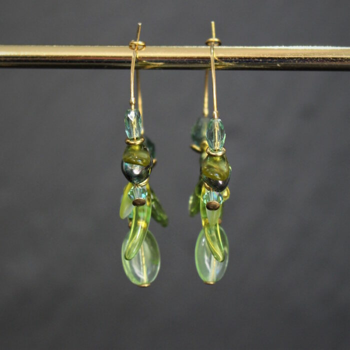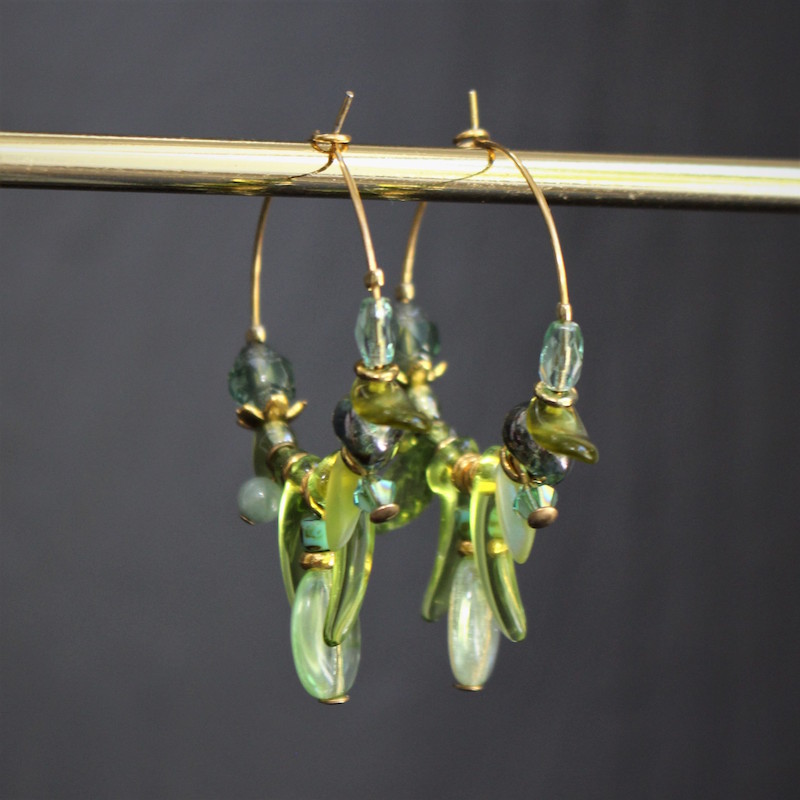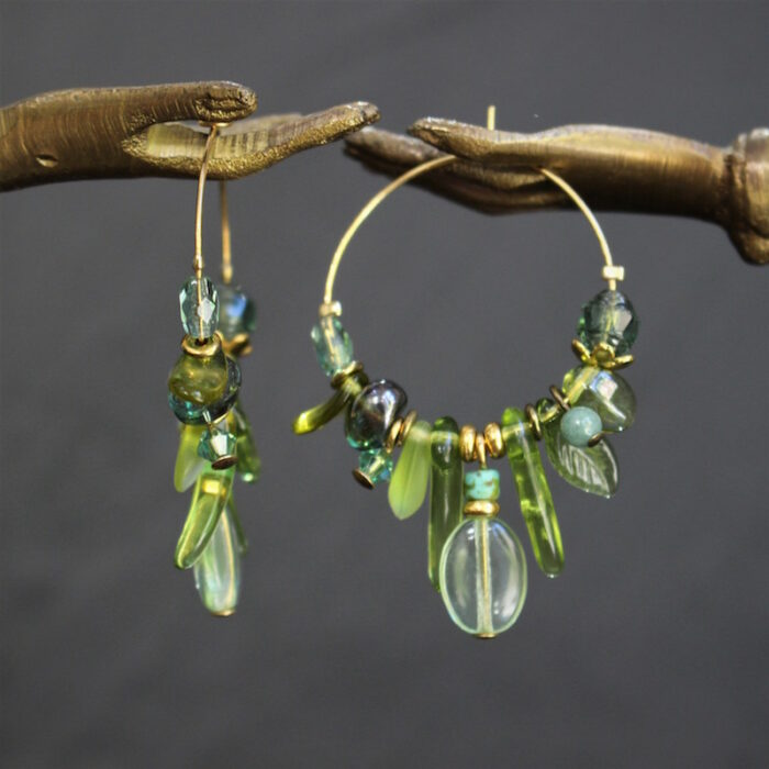 Acier inoxydable, laiton doré à l’or fin et pâte de verre.
