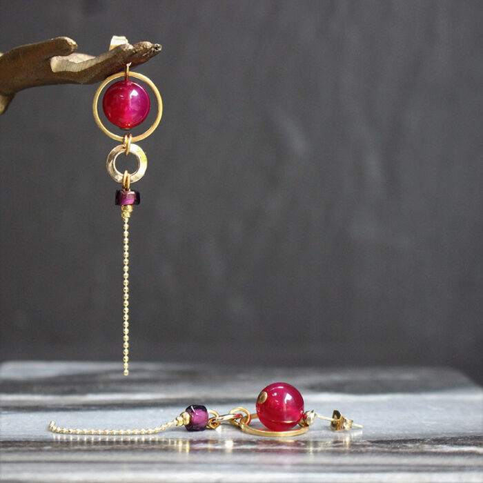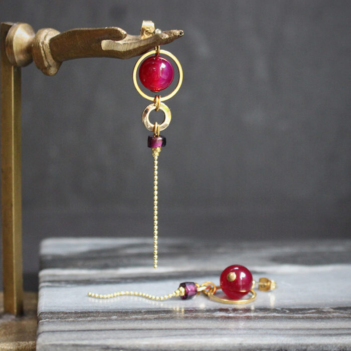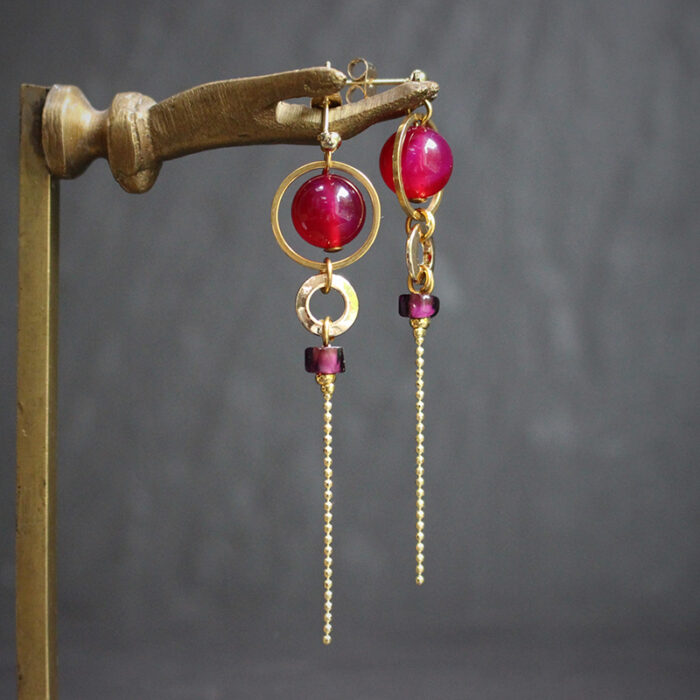 Laiton doré à l’or fin, Oeil de taureau et pâte de verre.