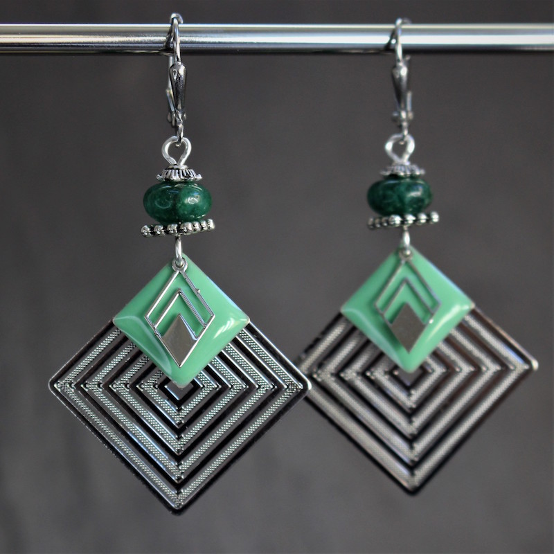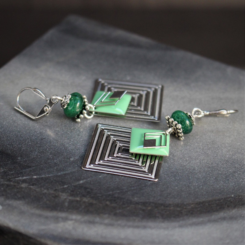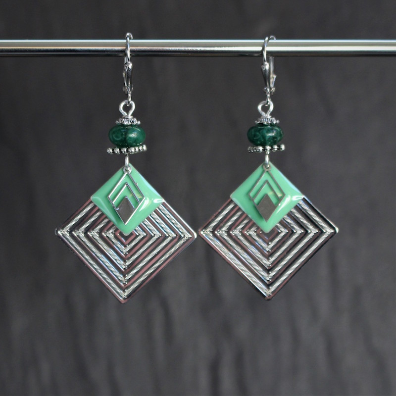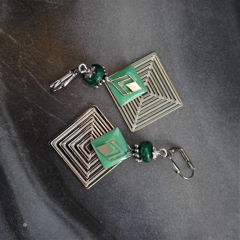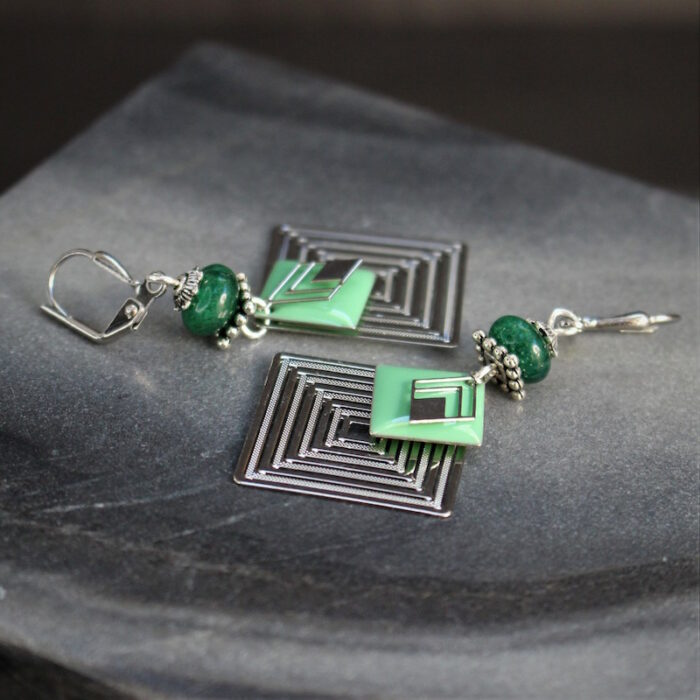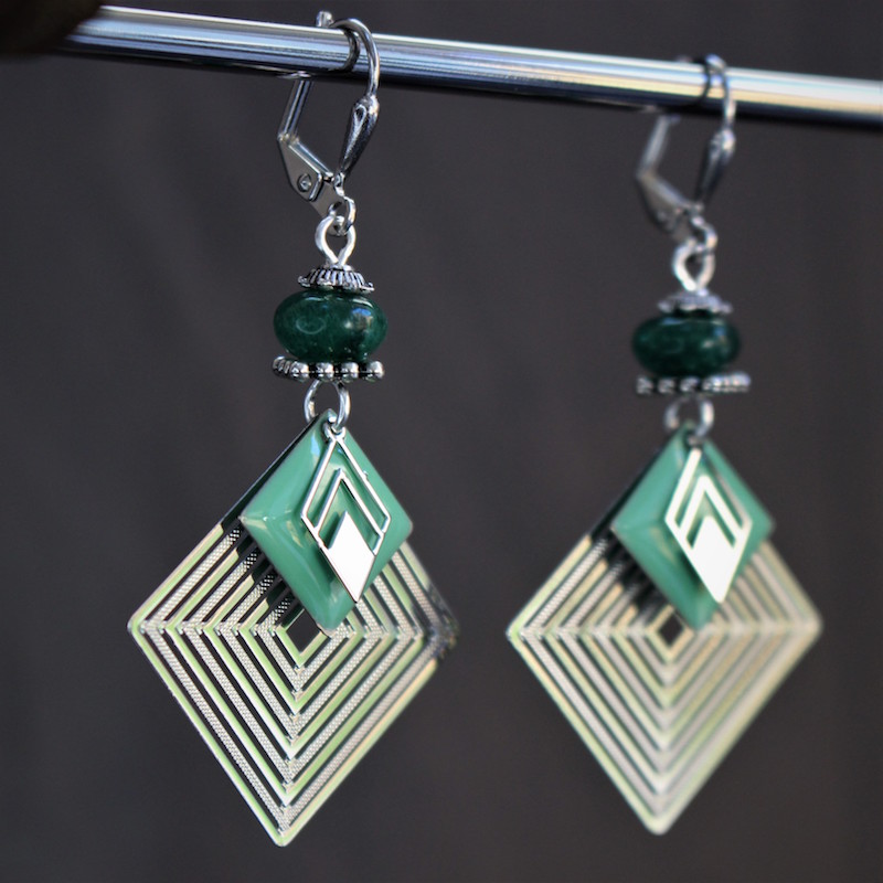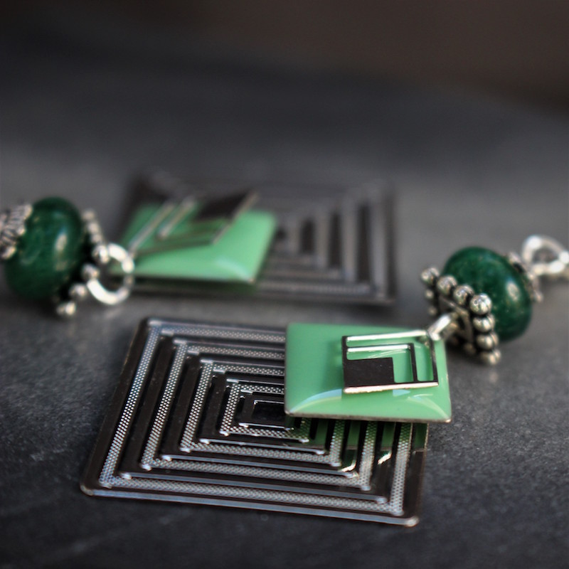 Laiton argenté sans nickel, émail et aventurine.
