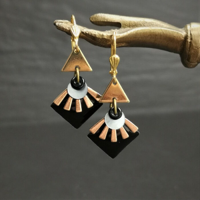 Laiton doré à l’or fin, émail, nacre et pâte de verre.