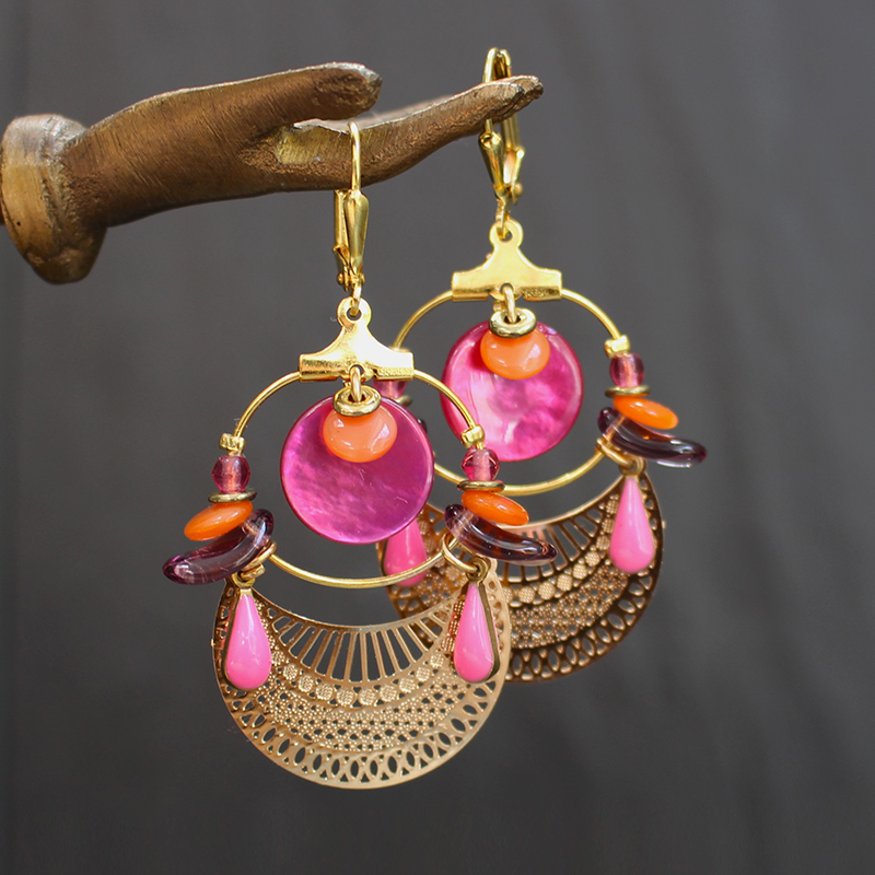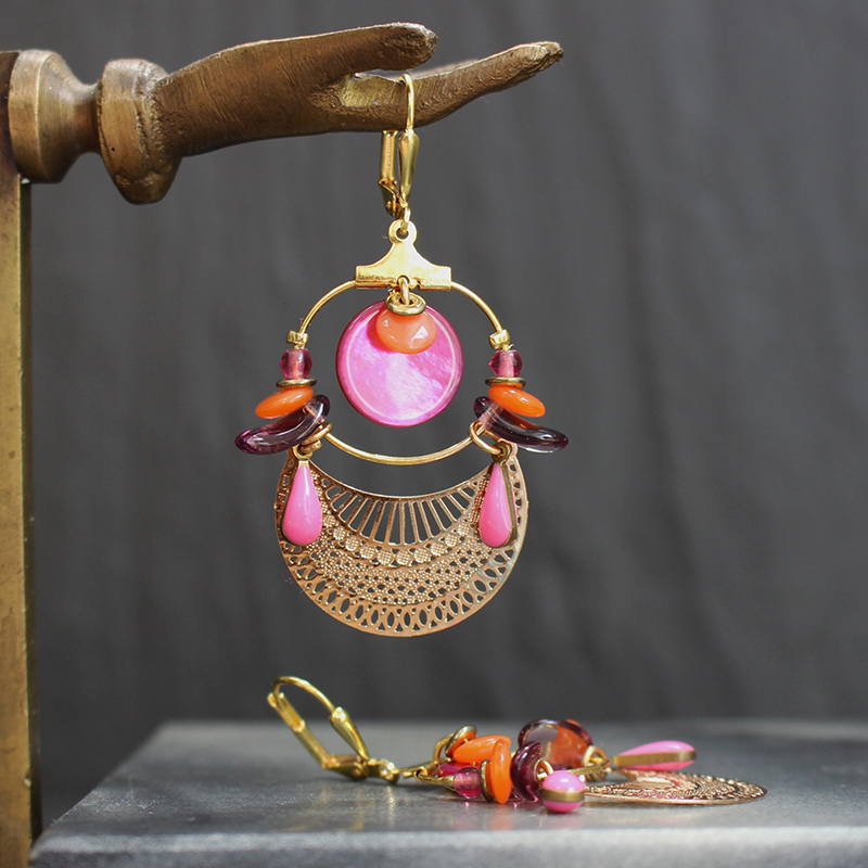 Laiton doré à l’or fin, émail, nacre et pâte de verre.
