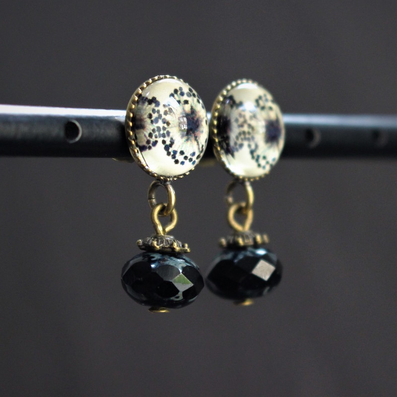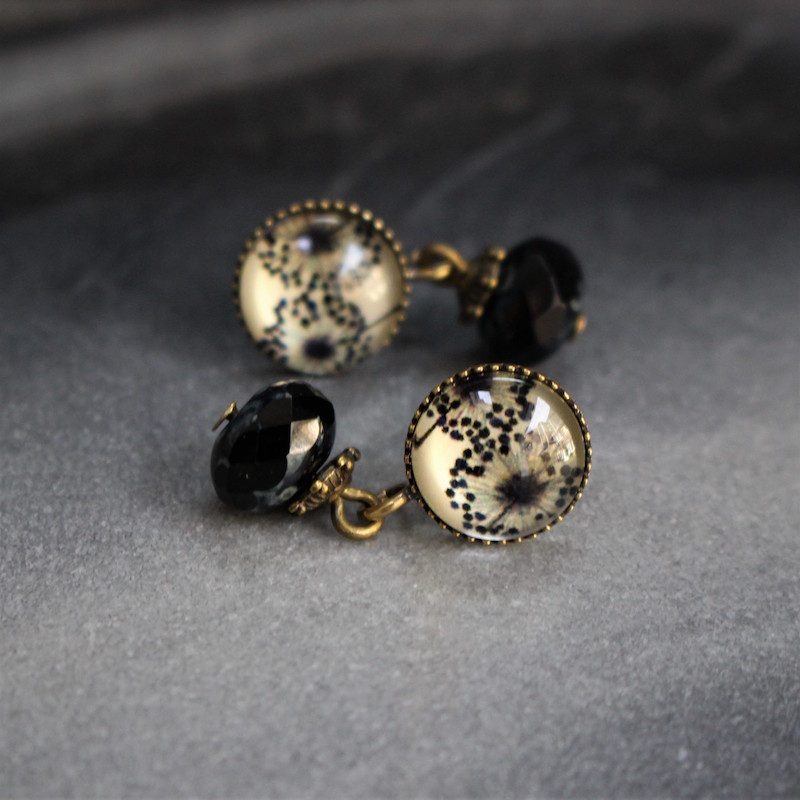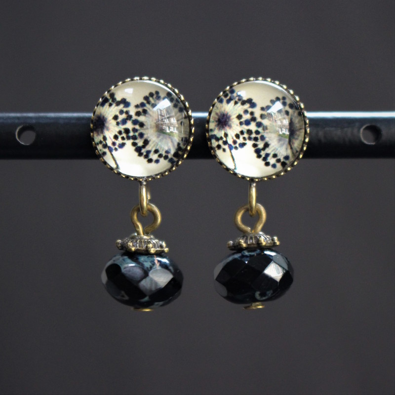 Boucles d’oreilles – Cabochon pissenlit – Clip