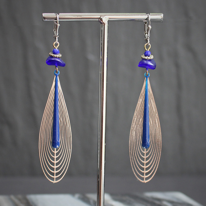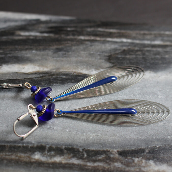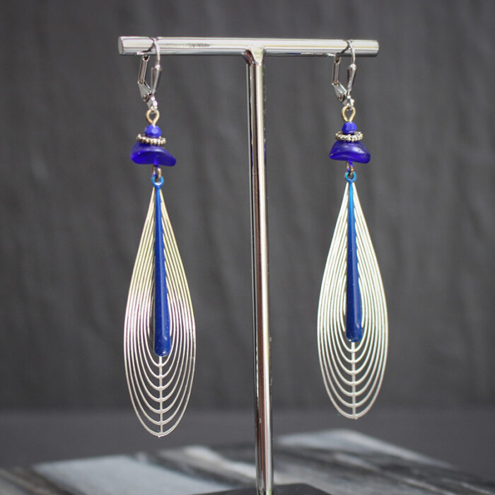 Laiton argenté sans nickel, émail et pâte de verre.