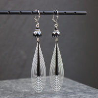 Laiton argenté sans nickel, émail et pâte de verre.