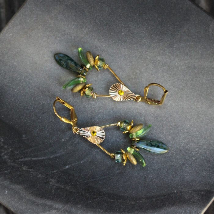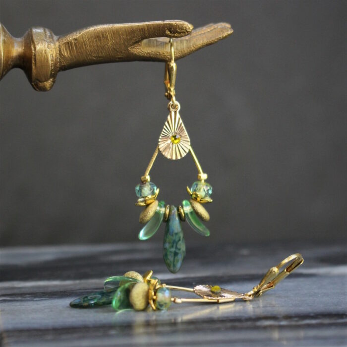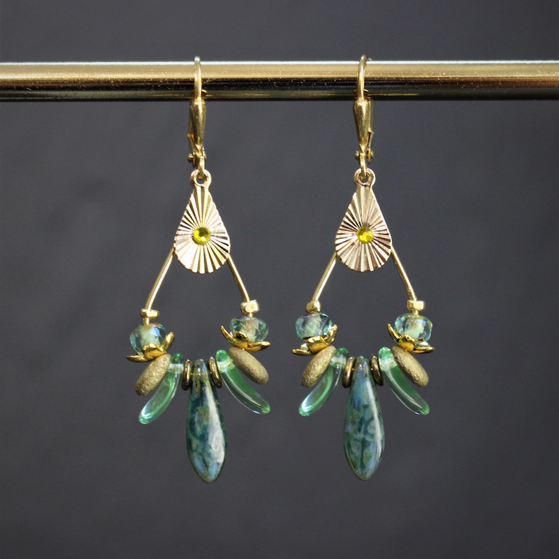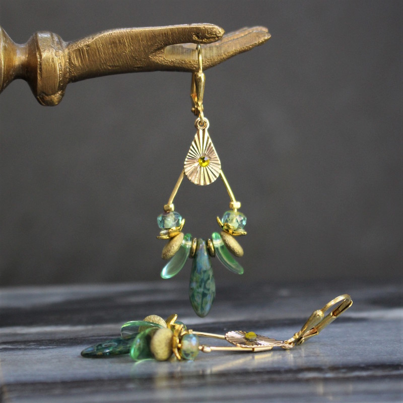 Laiton doré à l’or fin et pâte de verre.