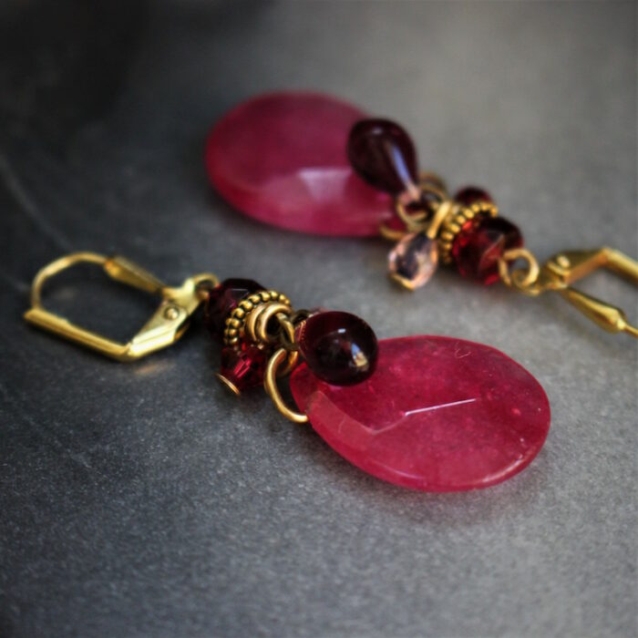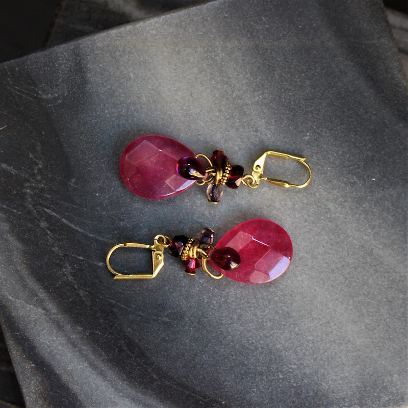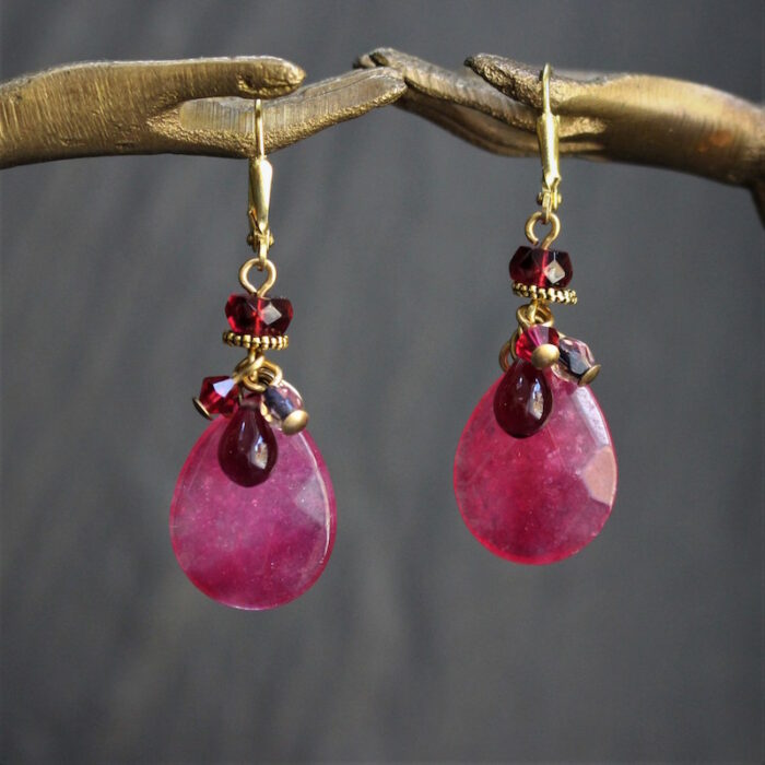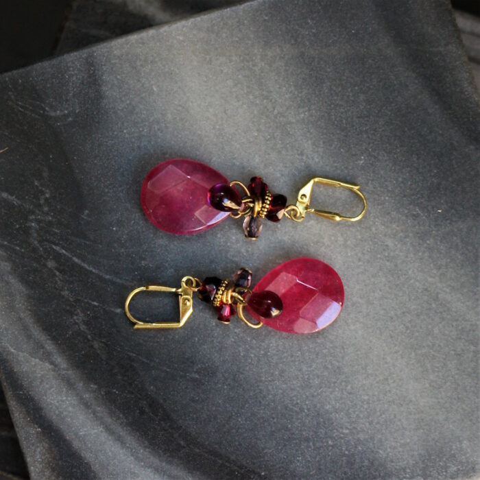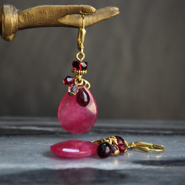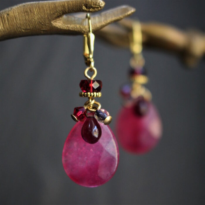 Laiton doré à l’or fin, agate teintée, pâte de verre et cristal de Swarovski.