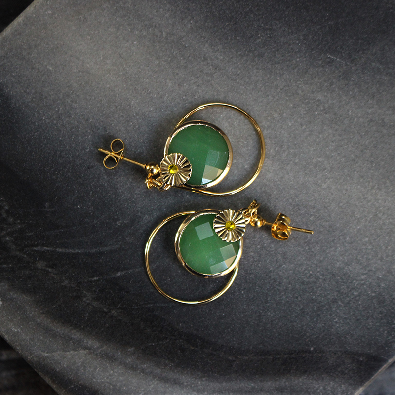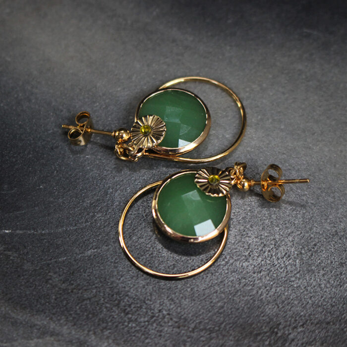 Acier inoxydable et laiton doré à l’or fin, cristal de verre.