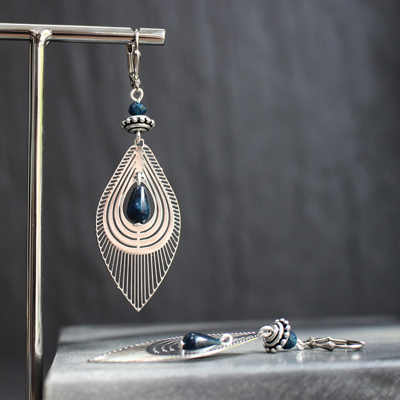 Laiton argenté sans nickel et jade teinté et pâte de verre.