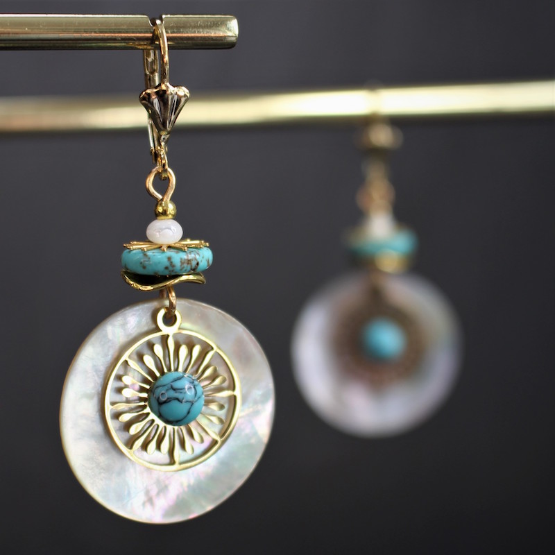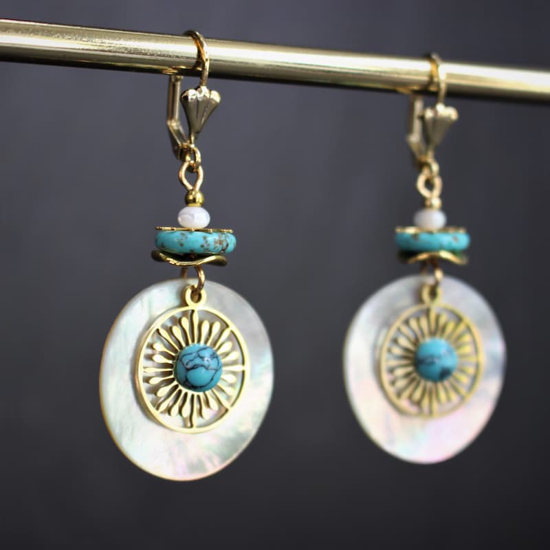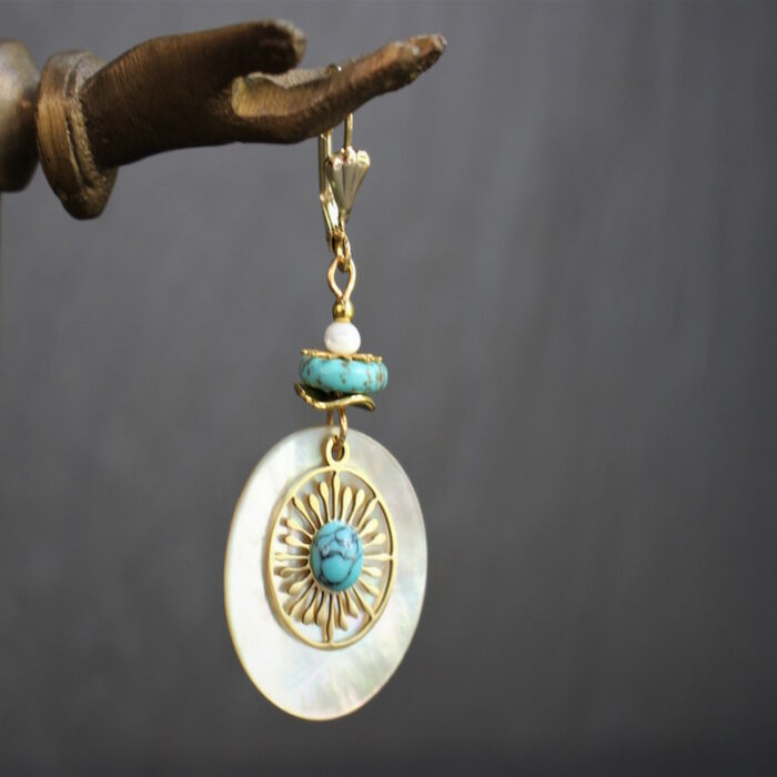 Acier inoxydable, laiton doré à l’or fin, nacre et turquoise.