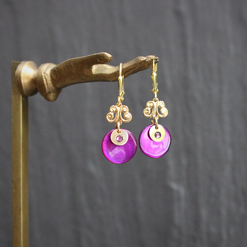Laiton doré à l’or fin, nacre, strass en cristal de Swarovski.
