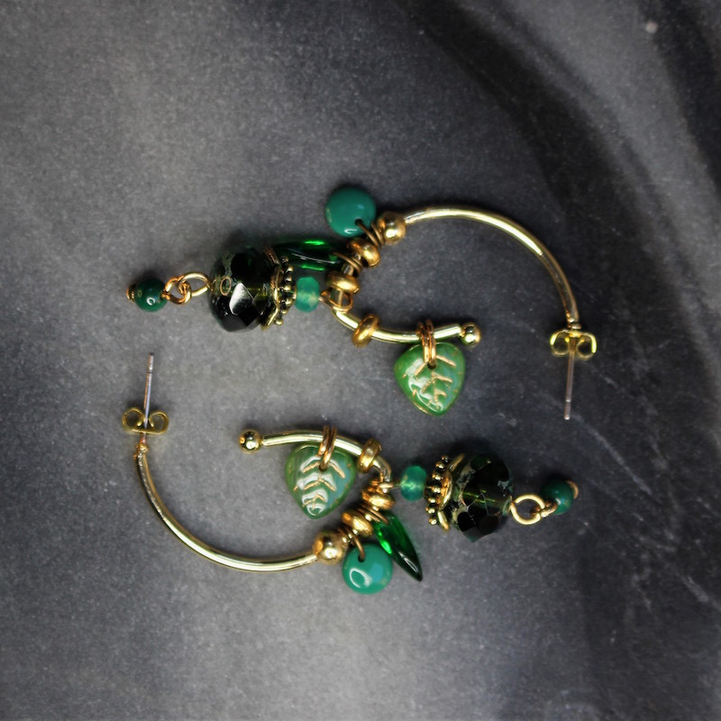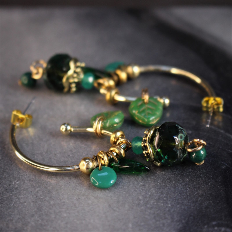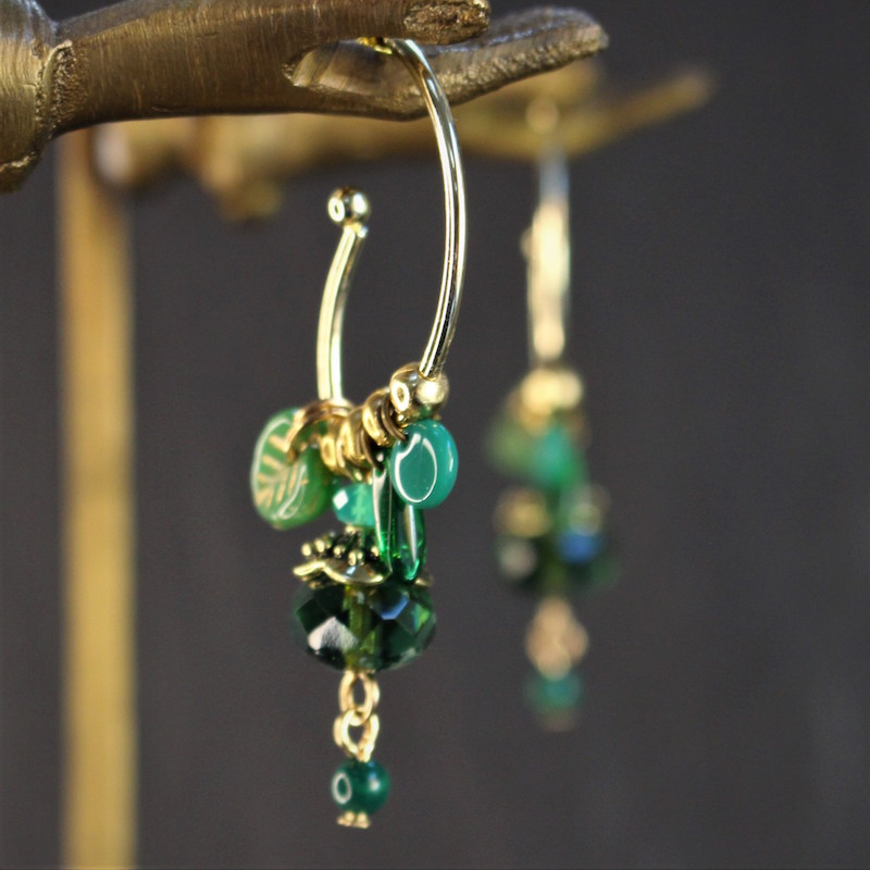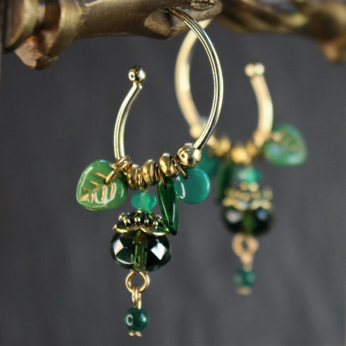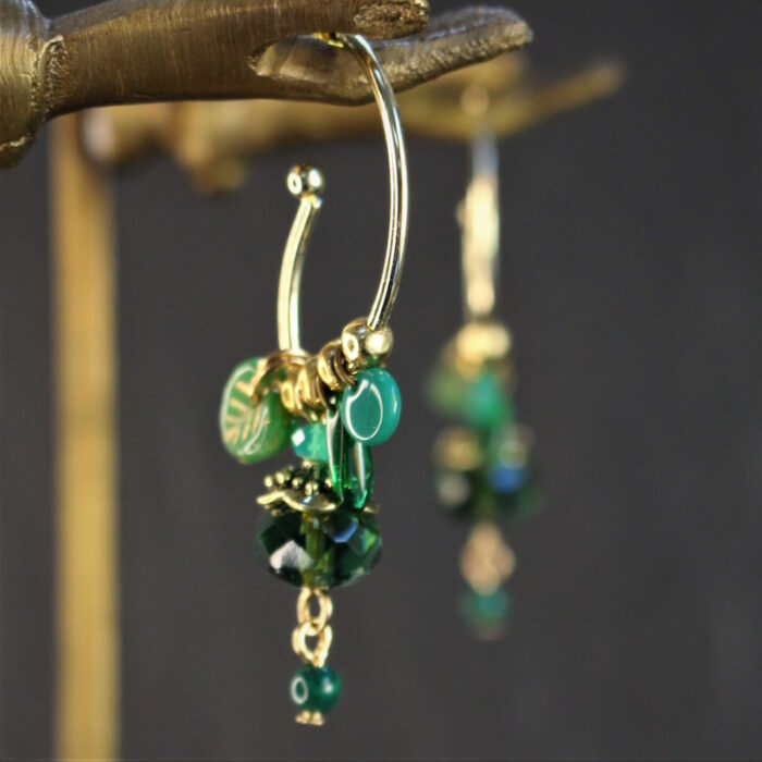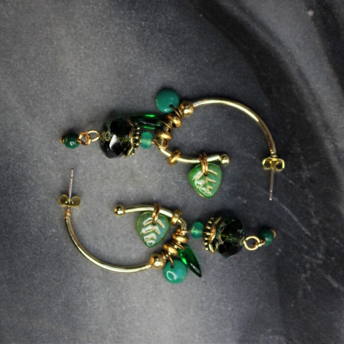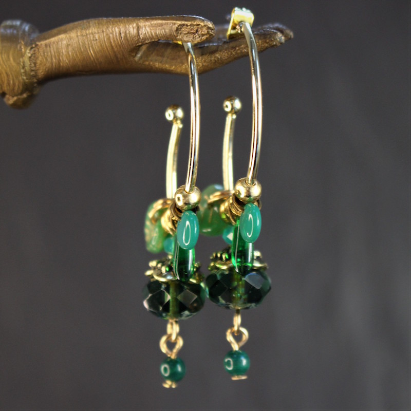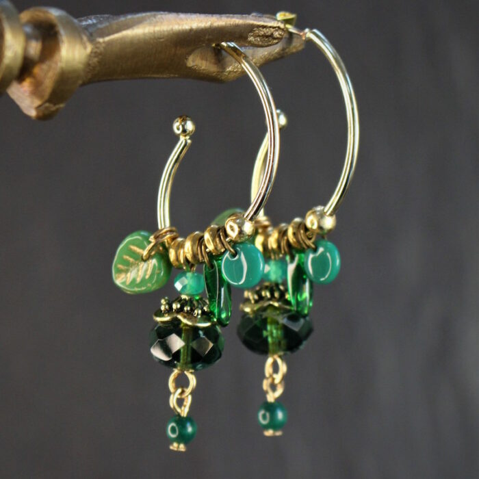 Laiton doré à l’or fin, malachite, jade et pâte de verre.