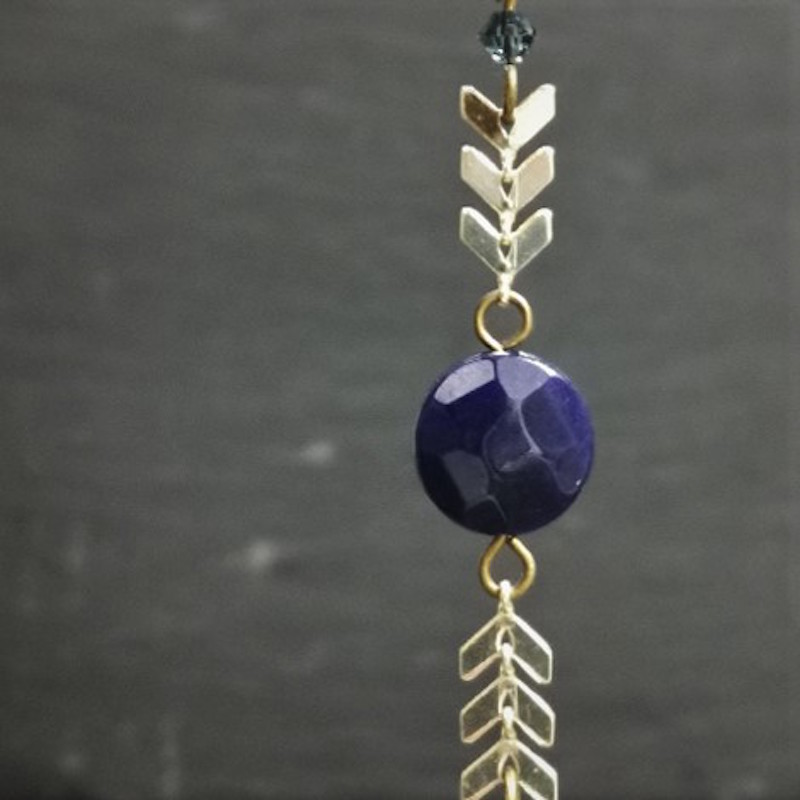 Laiton doré à l’or fin, agate et cristal de Swarovski.