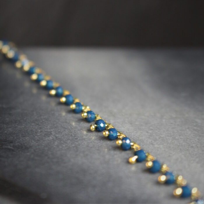 Acier inoxydable, laiton doré à l’or fin et pâte de verre