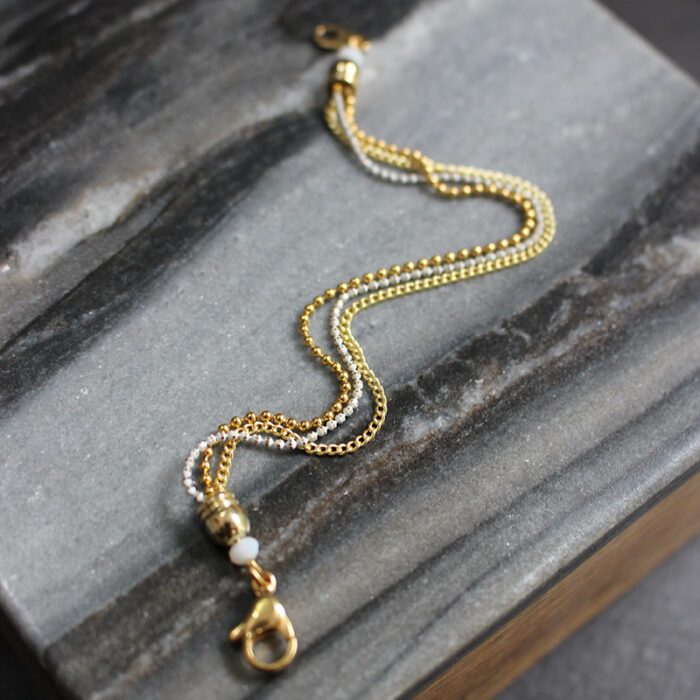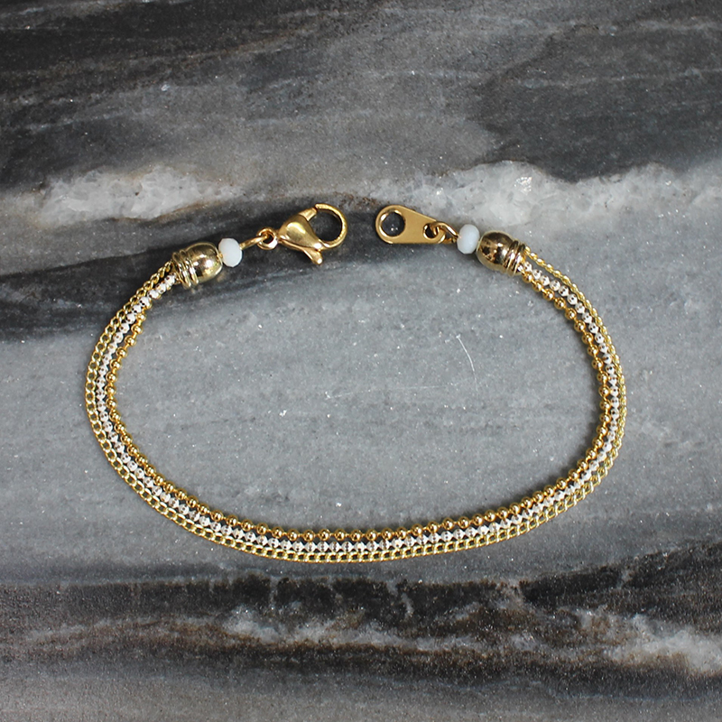 Laiton doré à l’or fin, coloré et acier inoxydable.