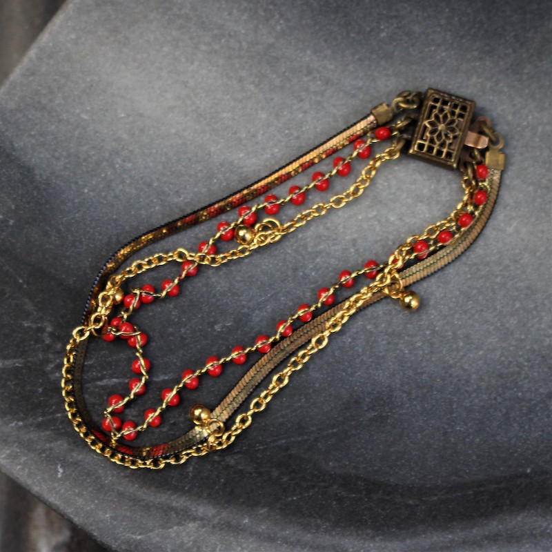 Acier inoxydable, laiton doré à l’or fin et émail.