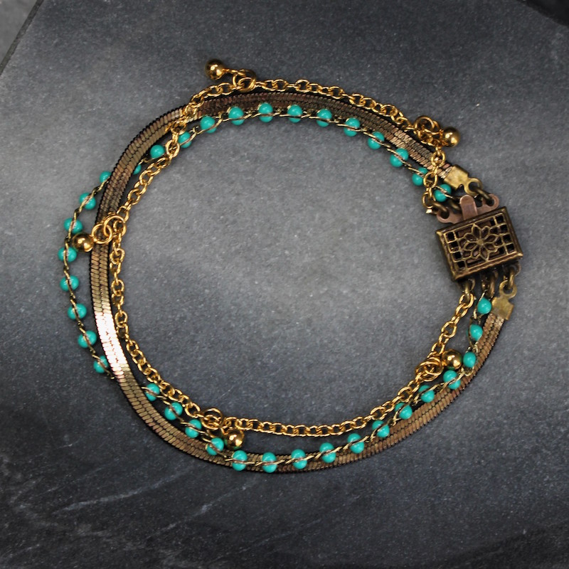Acier inoxydable, laiton doré à l’or fin et émail.