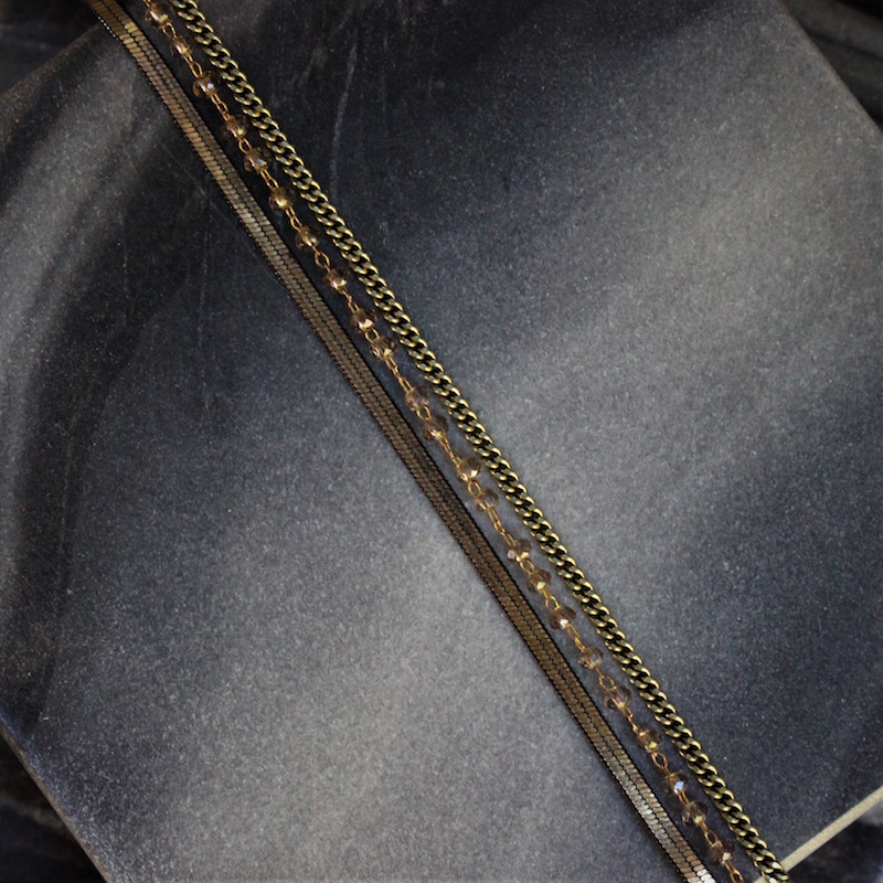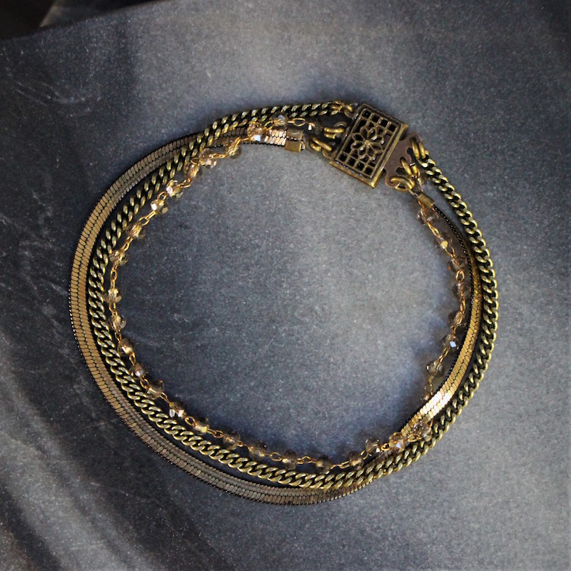 Acier inoxydable, laiton doré à l’or fin et pâte de verre.