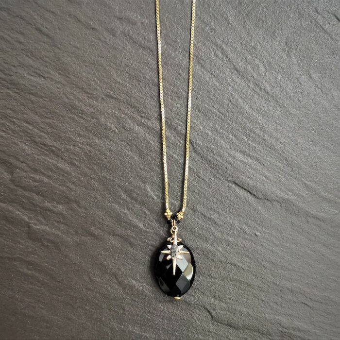 Acier inoxydable, laiton doré à l’or fin, agate et strass en cristal de verre.