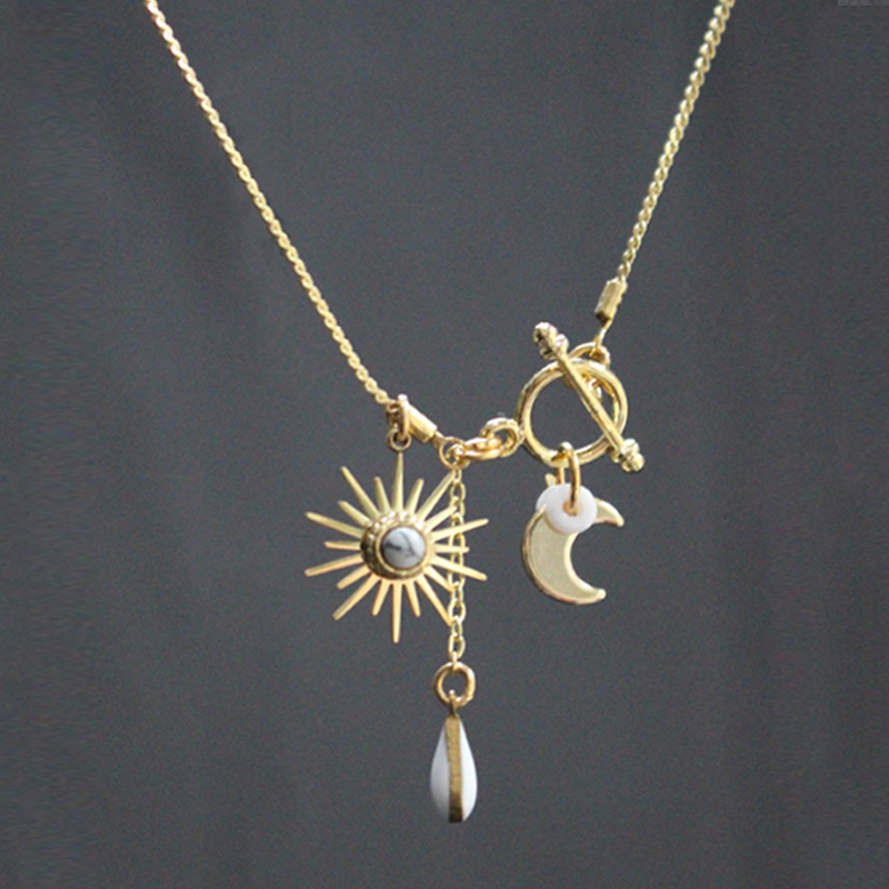Laiton doré à l’or fin, howlite, émail et pâte de verre.