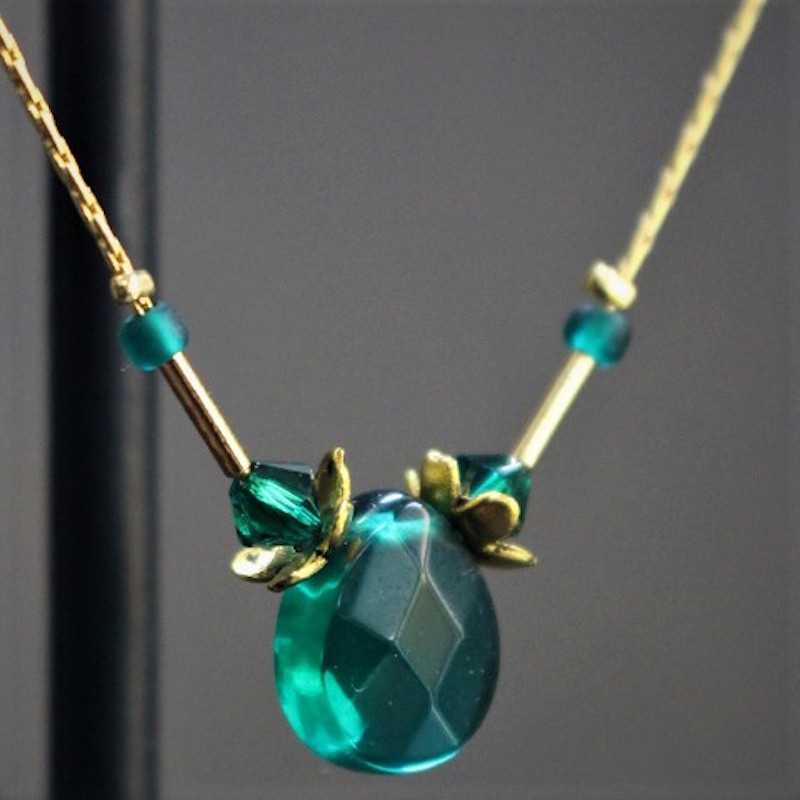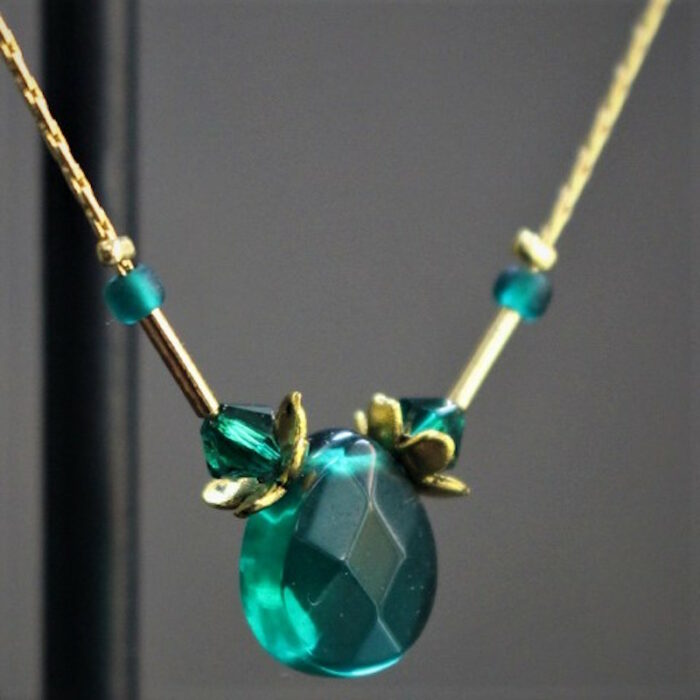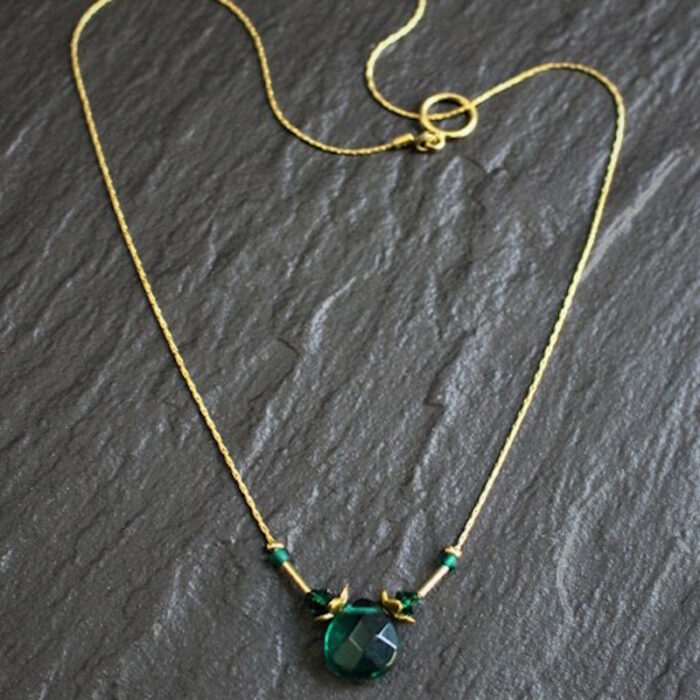 Laiton doré à l’or fin, pâte de verre et cristal de Swarovski.